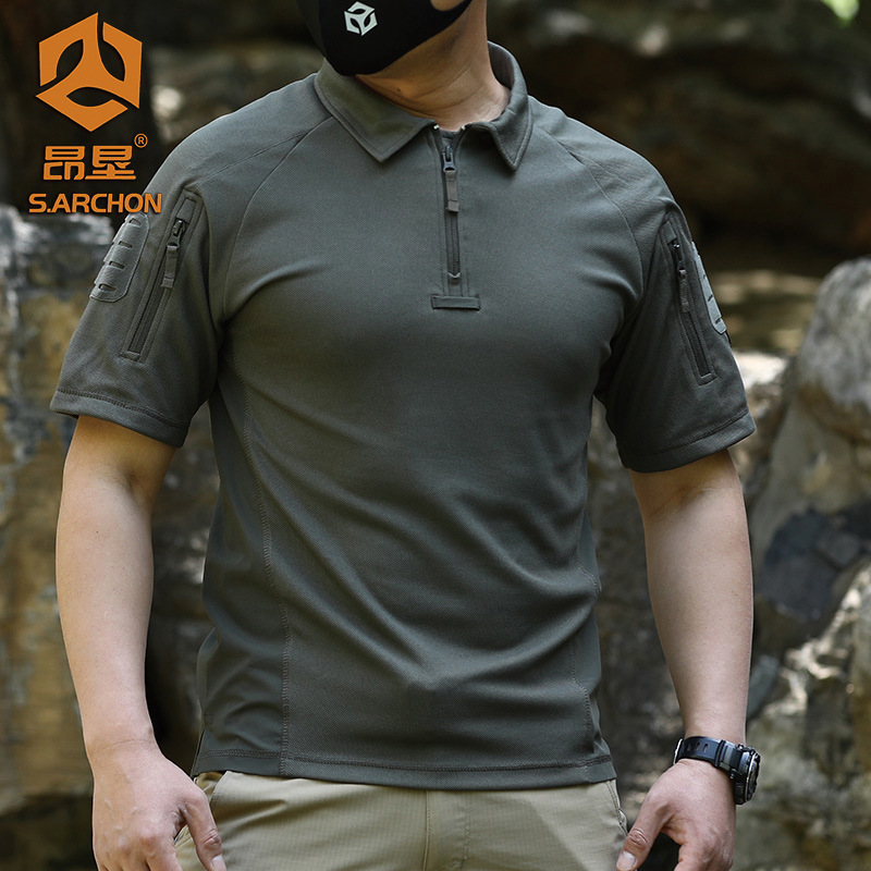 Angmei 야외 타겟 필드 속건성 옷깃 반팔 남성 여름 가볍고 통기성 스포츠 폴로 셔츠 군사 팬 전술 티셔츠