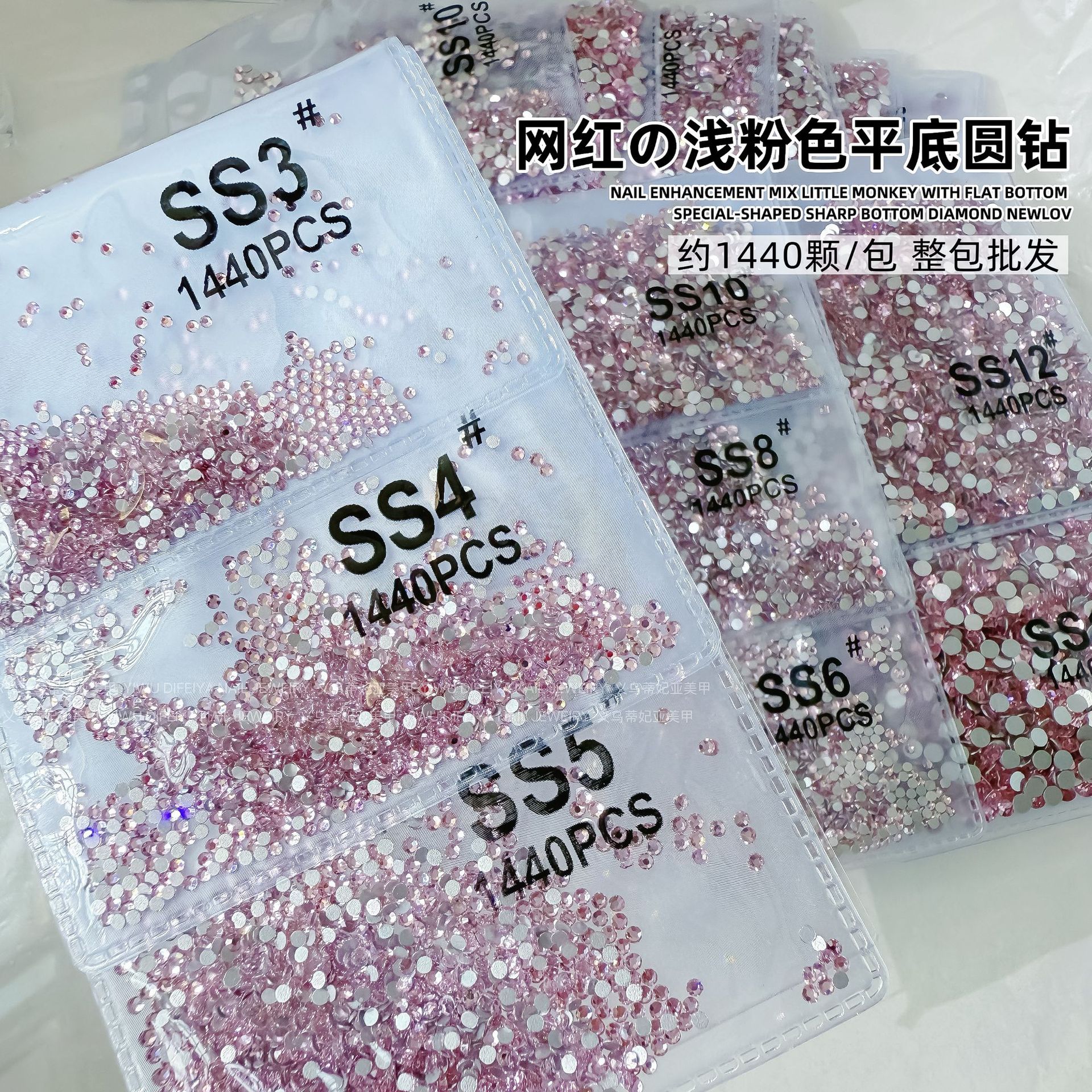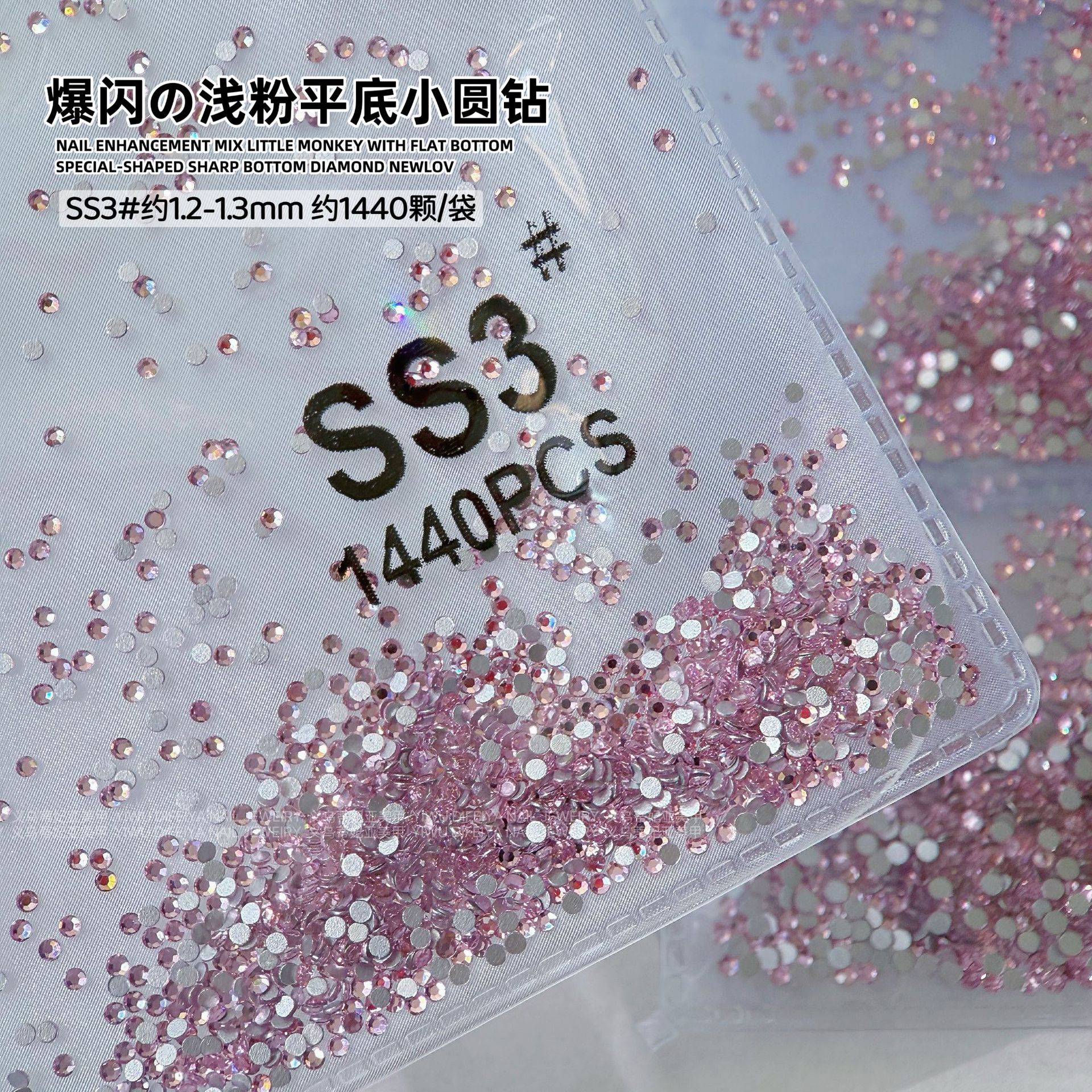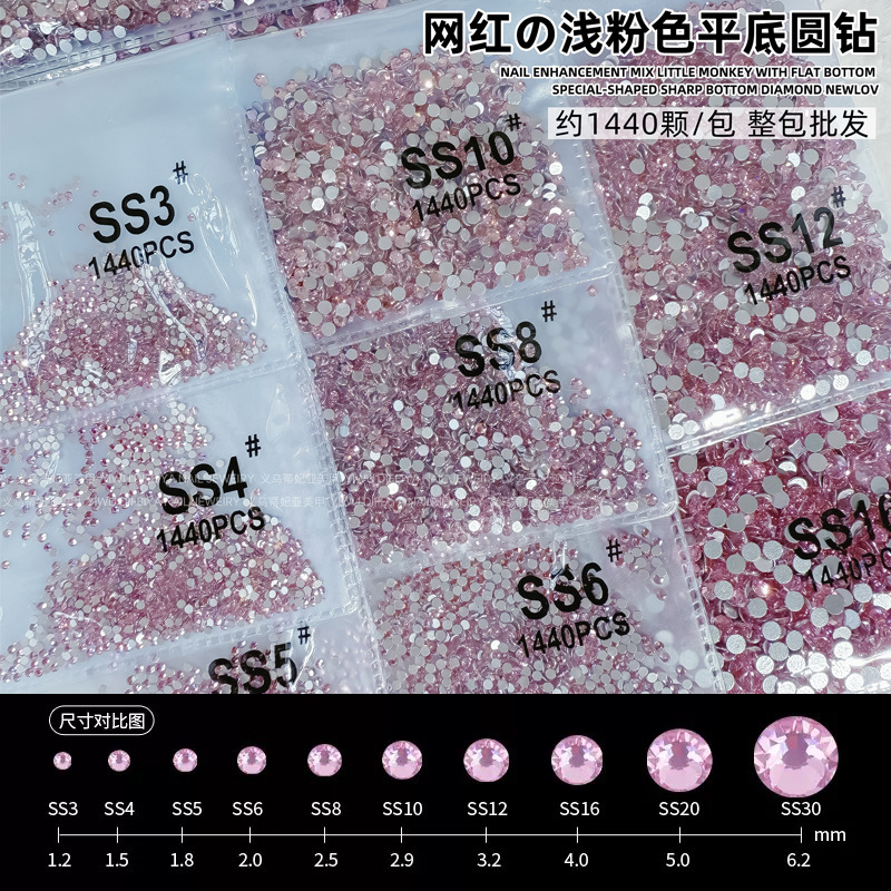 라이트 핑크 플랫 소형 라운드 다이아몬드, 반짝이는 핑크 플랫 다이아몬드, 네일 아트 다이아몬드, 유리 라인스톤, 크로스보더 네일 아트 주얼리 다이아몬드스토어 가기