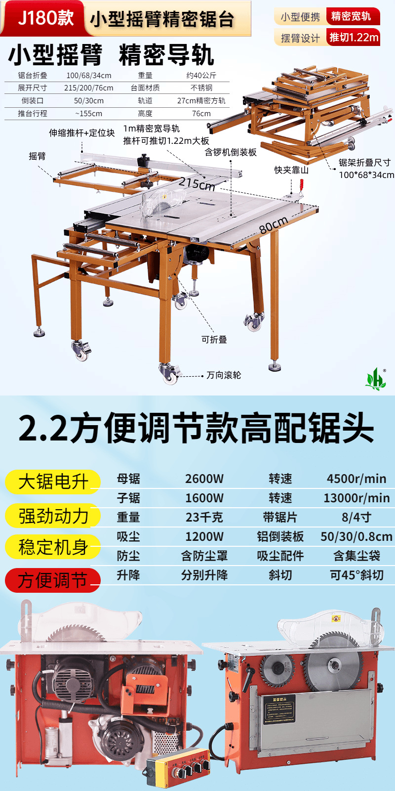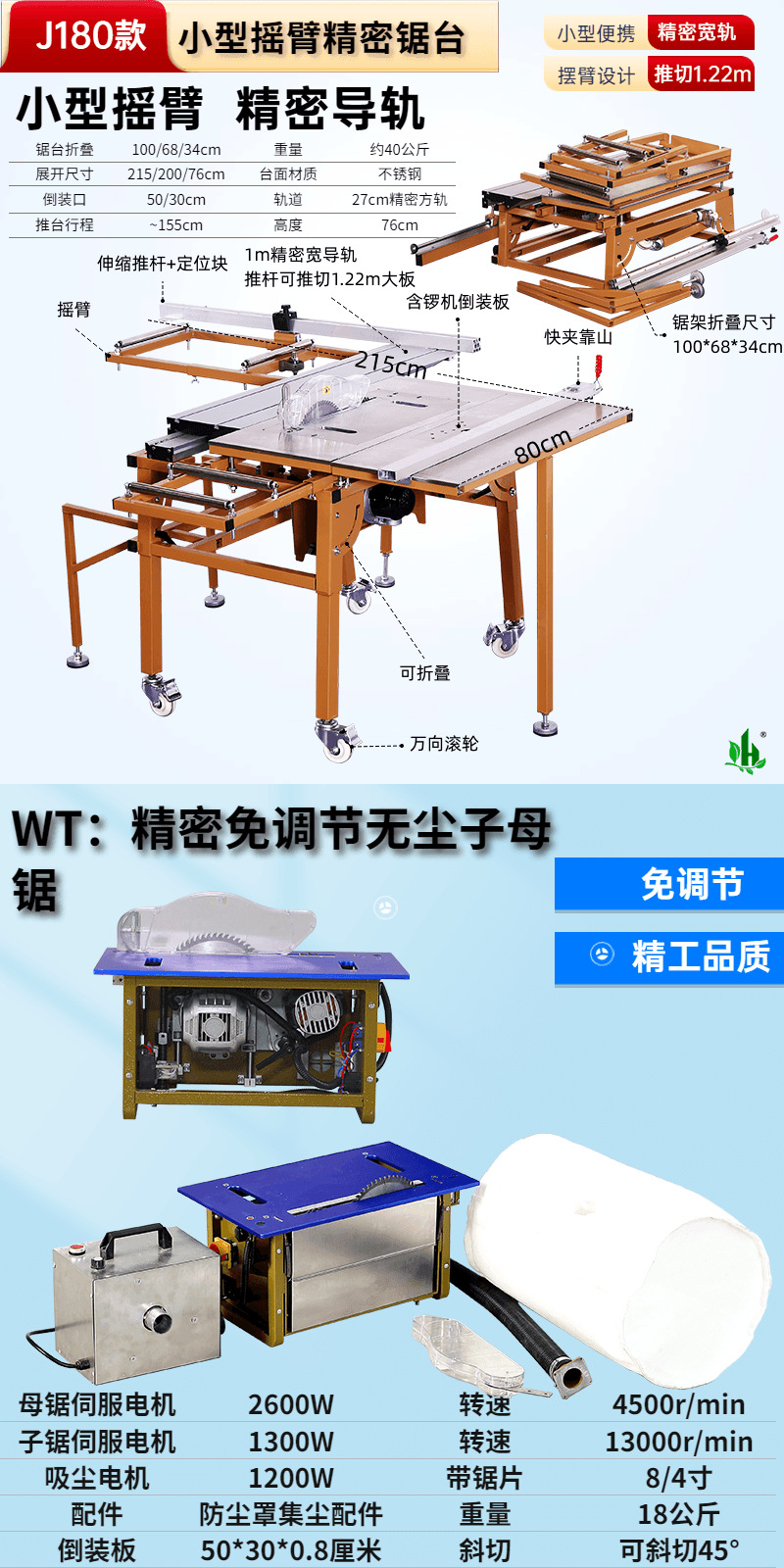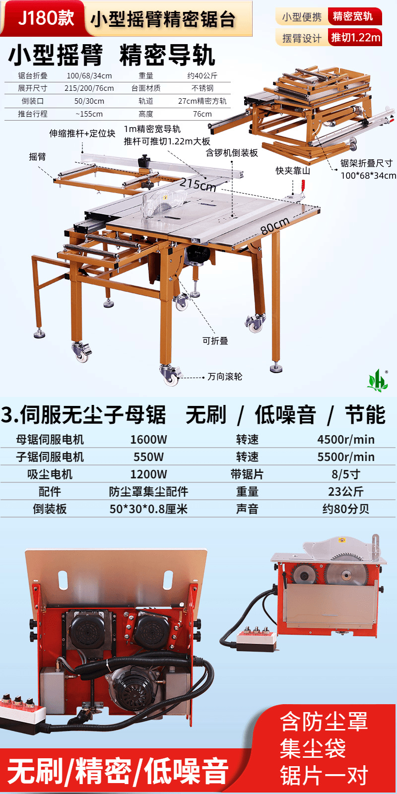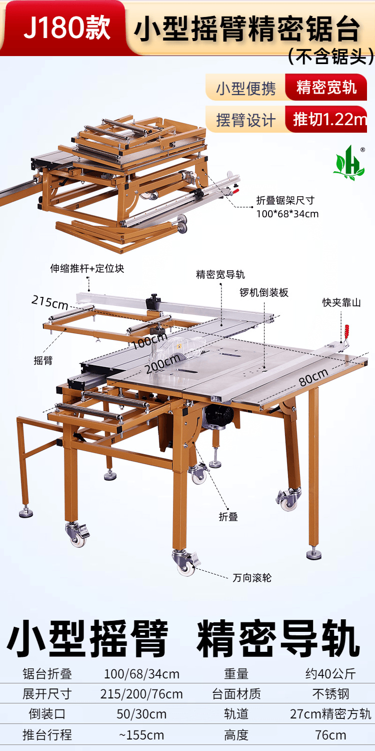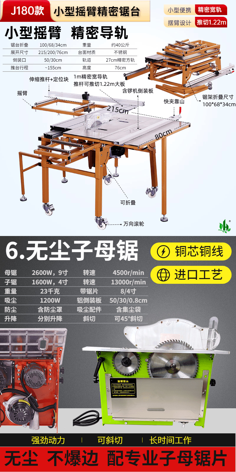 • J180 소형 로커암 톱 테이블✚4. 브러시리스 및 먼지 없는 톱, 대형 톱, 전기 리프트
