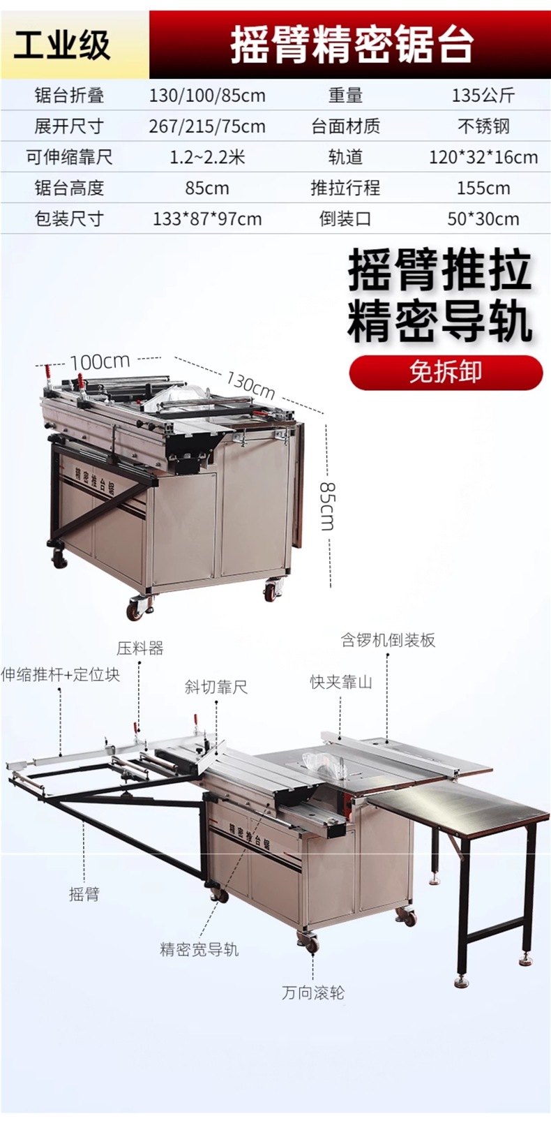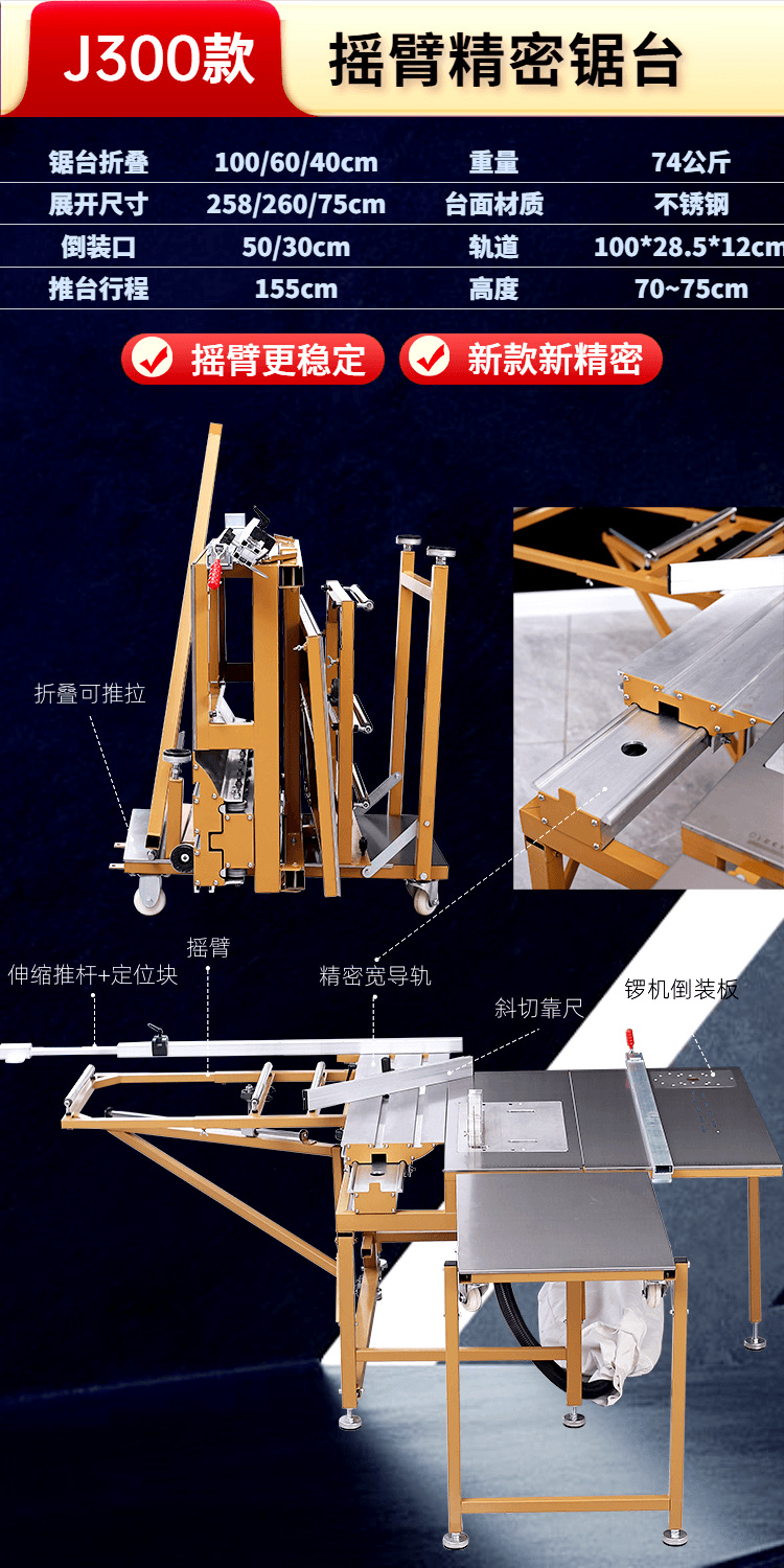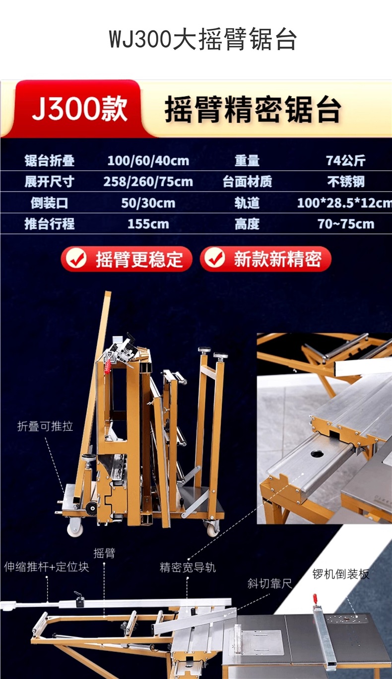 Wanjia 톱 테이블 로커 암 슬라이딩 테이블 톱 목공 특수 테이블 톱 랙 다기능 소형 작업대 접이식 정밀 톱