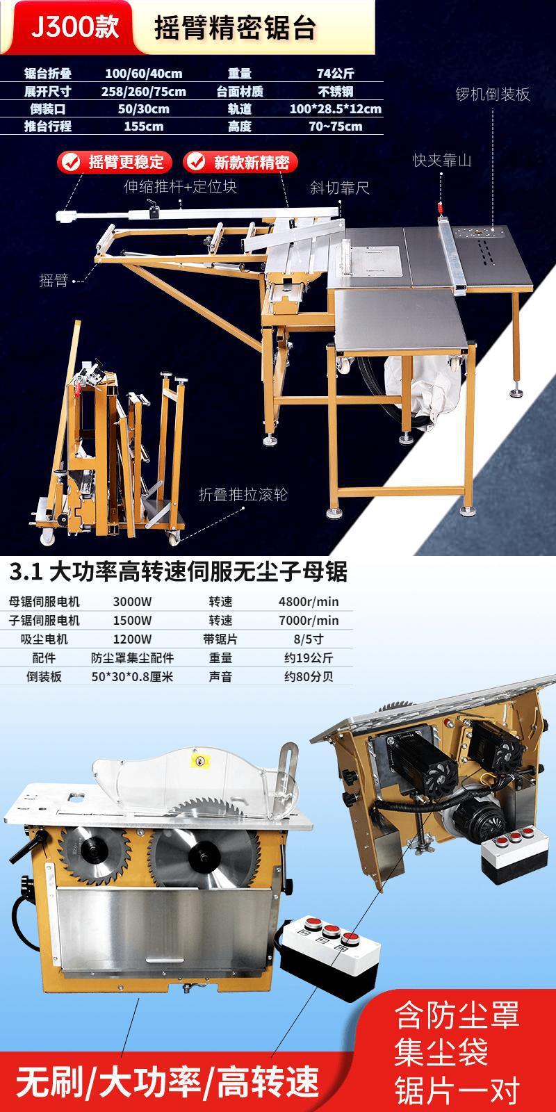 • J300 대형 로커 푸시 테이블 톱✚3.1 고출력 브러시리스 먼지 없는 더블 톱
