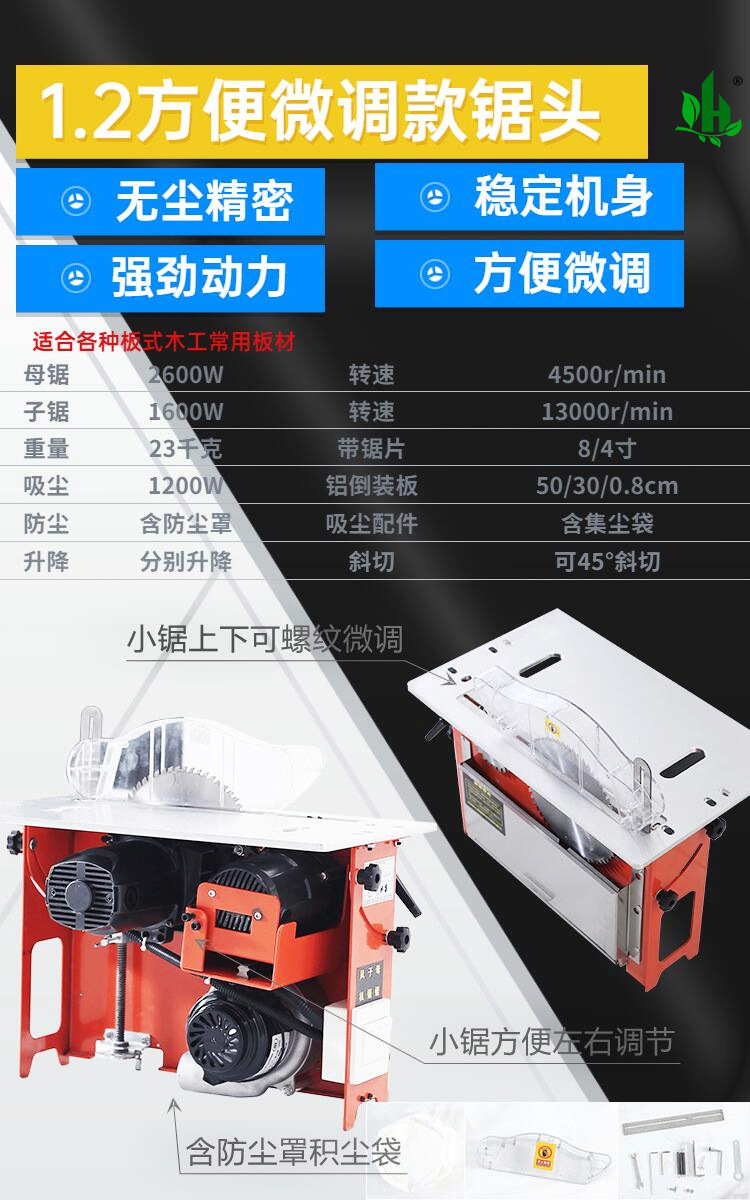 • 2.2 정밀한 미세 조정 기능을 갖춘 고급 대형 톱 전기 리프팅 서브 톱