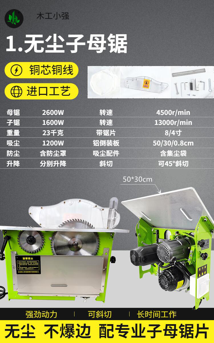 • J180 소형 로커암 톱 테이블✚WT60 고속 정밀 브러시리스 먼지 없는 이중 톱