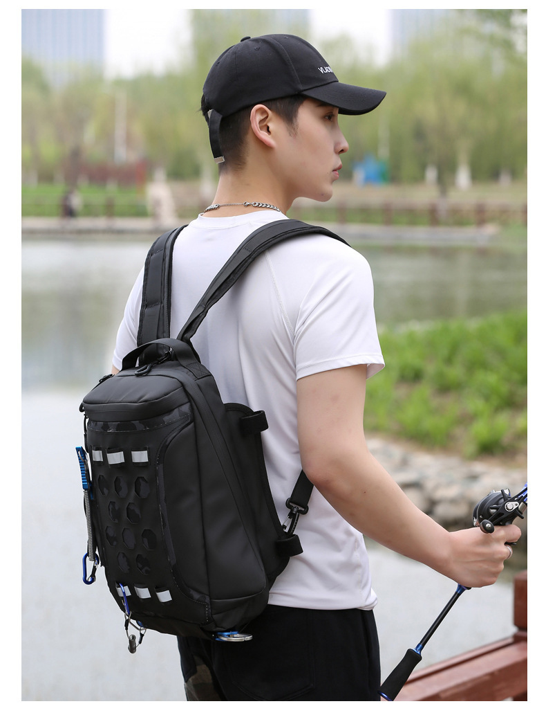싱글 및 더블 숄더 루어 백 새로운 야외 배낭 남성용 다기능 싱글 숄더 크로스 바디 배낭 낚시 스포츠 트렌디 백스토어 가기
