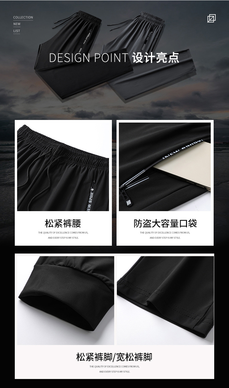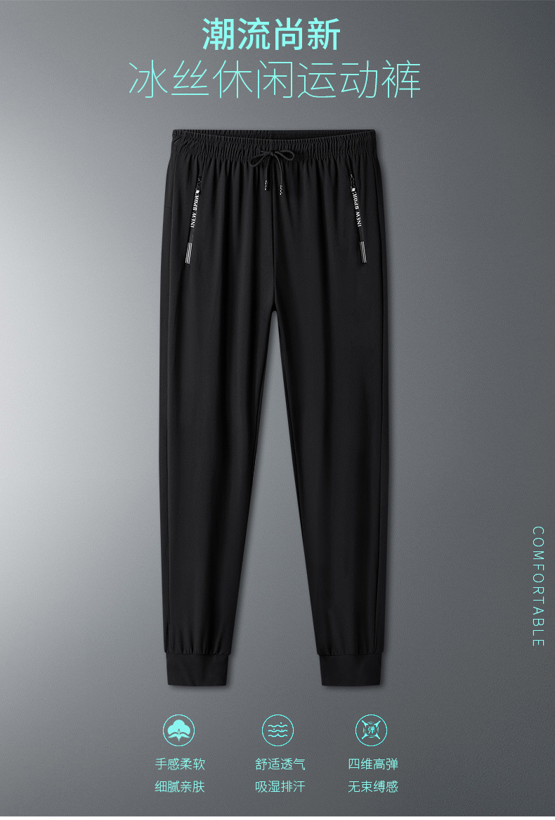 아이스 실크 바지 남성 여름 얇은 속건 스포츠 캐주얼 바지 루즈 스트레이트 레그 남성 여름 야외 바지