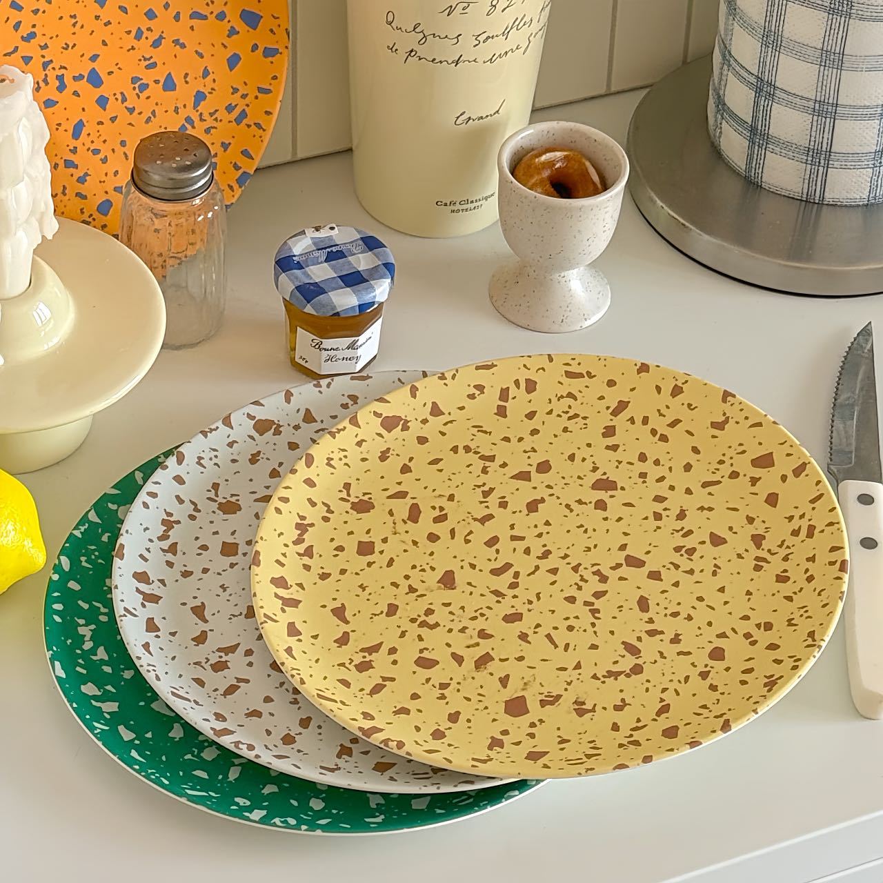 Terrazzo 시리즈 북유럽 창조적 인 피크닉 플레이트 인 스타일 손으로 그린 대나무 섬유 플레이트 친환경 피크닉 플레이트 어린이