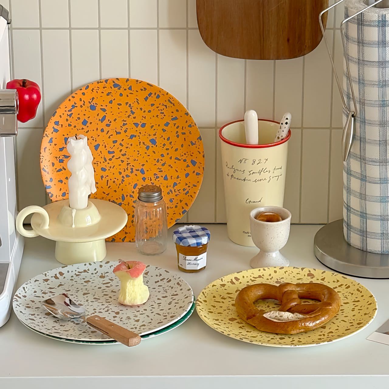 Terrazzo 시리즈 북유럽 창조적 인 피크닉 플레이트 인 스타일 손으로 그린 대나무 섬유 플레이트 친환경 피크닉 플레이트 어린이스토어 가기