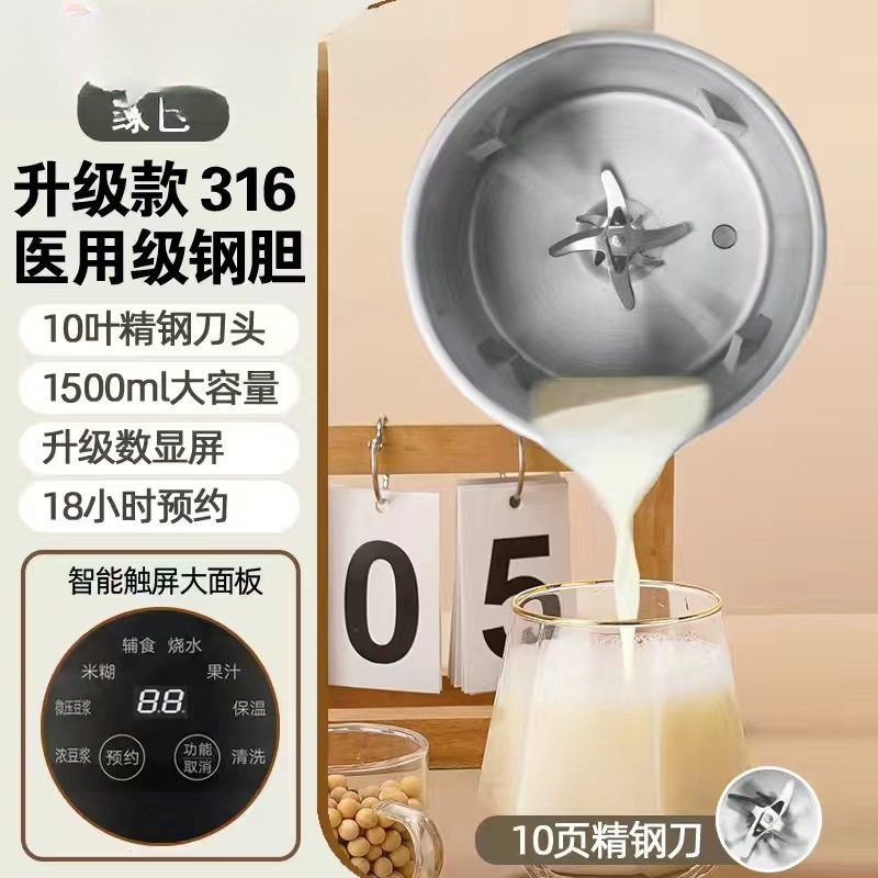 • 전체 스테인레스 스틸 모델 + 1200ml + 미세 압력 두유 + 화상 방지 316 스테인레스 스틸 라이너