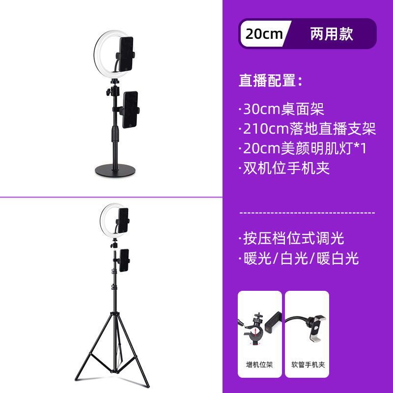 라이브 스트리밍 휴대폰 홀더, 범용 데스크탑, 새로운 셀카봉, 삼각대, 플로어 스탠딩 필 라이트, 실내 촬영 장비