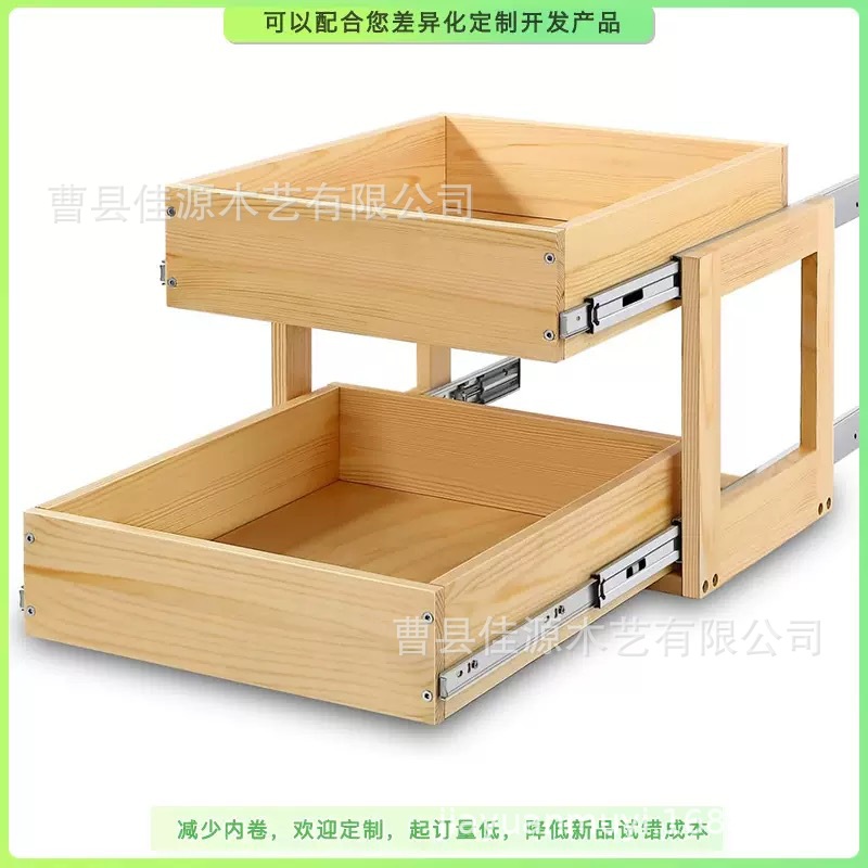 나무 더블 레이어 슬라이드 박스 주방 데스크탑 슬라이드 캐비닛 보관 상자 식기 및 접시 보관 상자 나무 상자스토어 가기