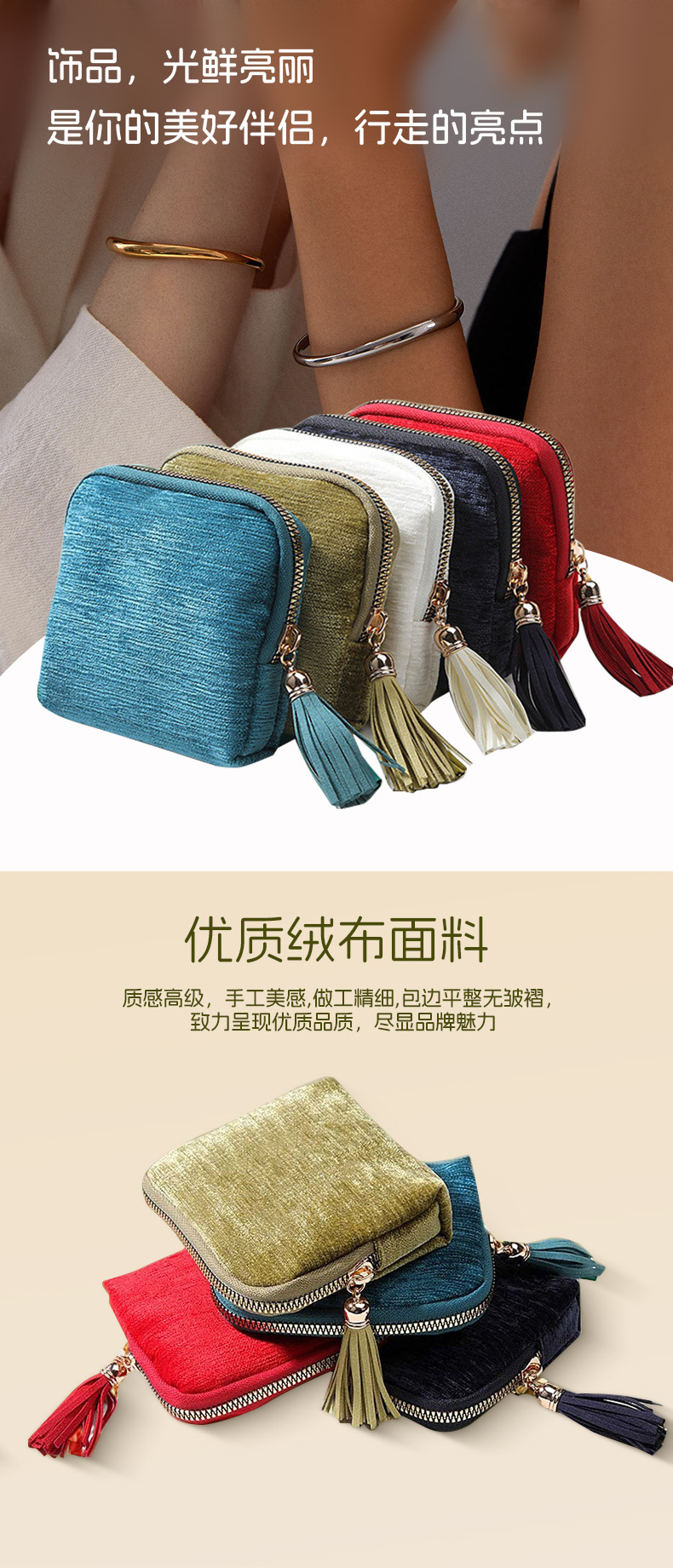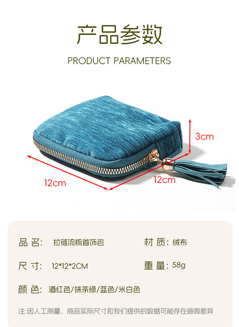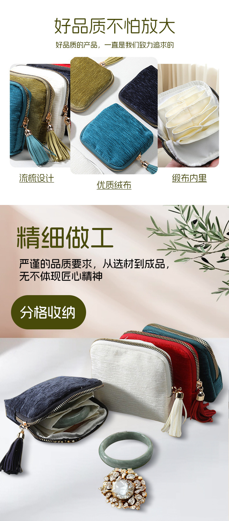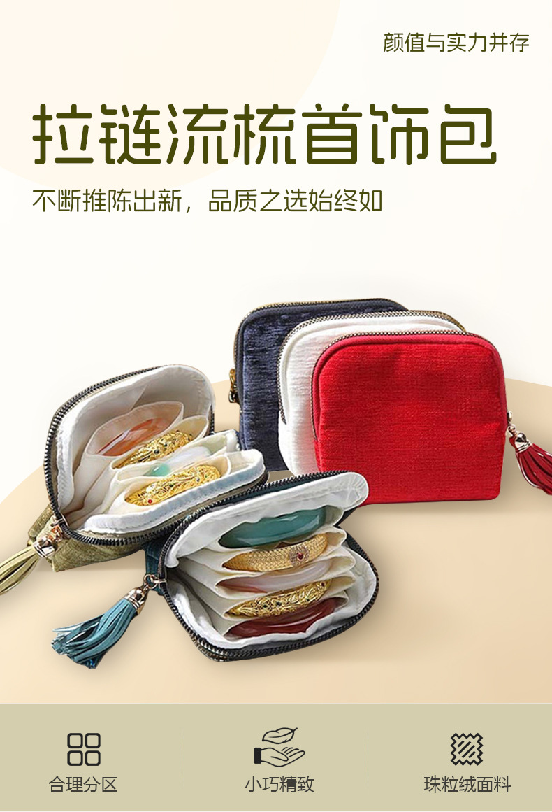 절묘한 보석 보관 가방, 태슬 지퍼 보석 가방, 반지 펜던트 팔찌 보석 가방, 휴대용 팔찌 보관 가방