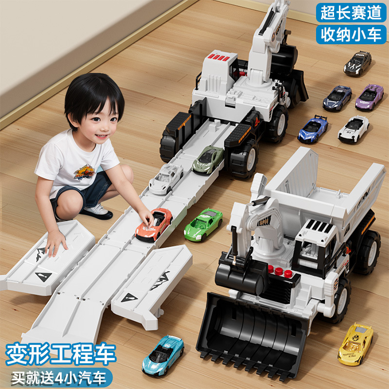 • 백색 엔지니어링 굴삭기 + 금속 트럭 4대 [봉인된 선물 상자]