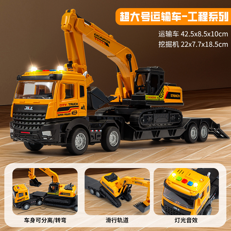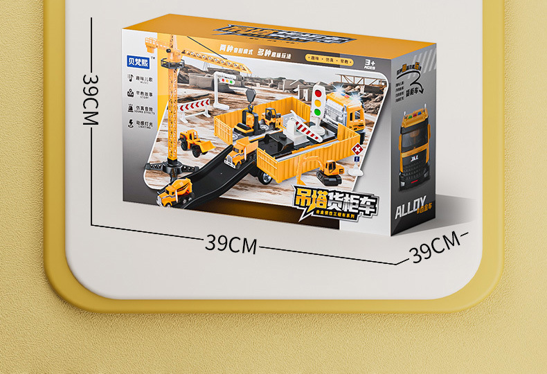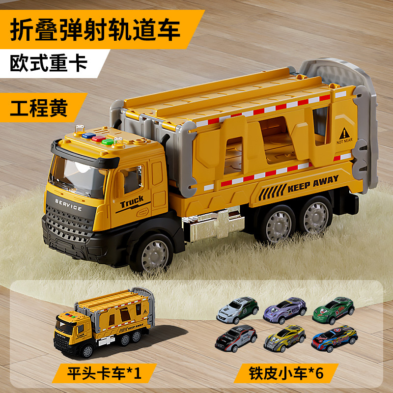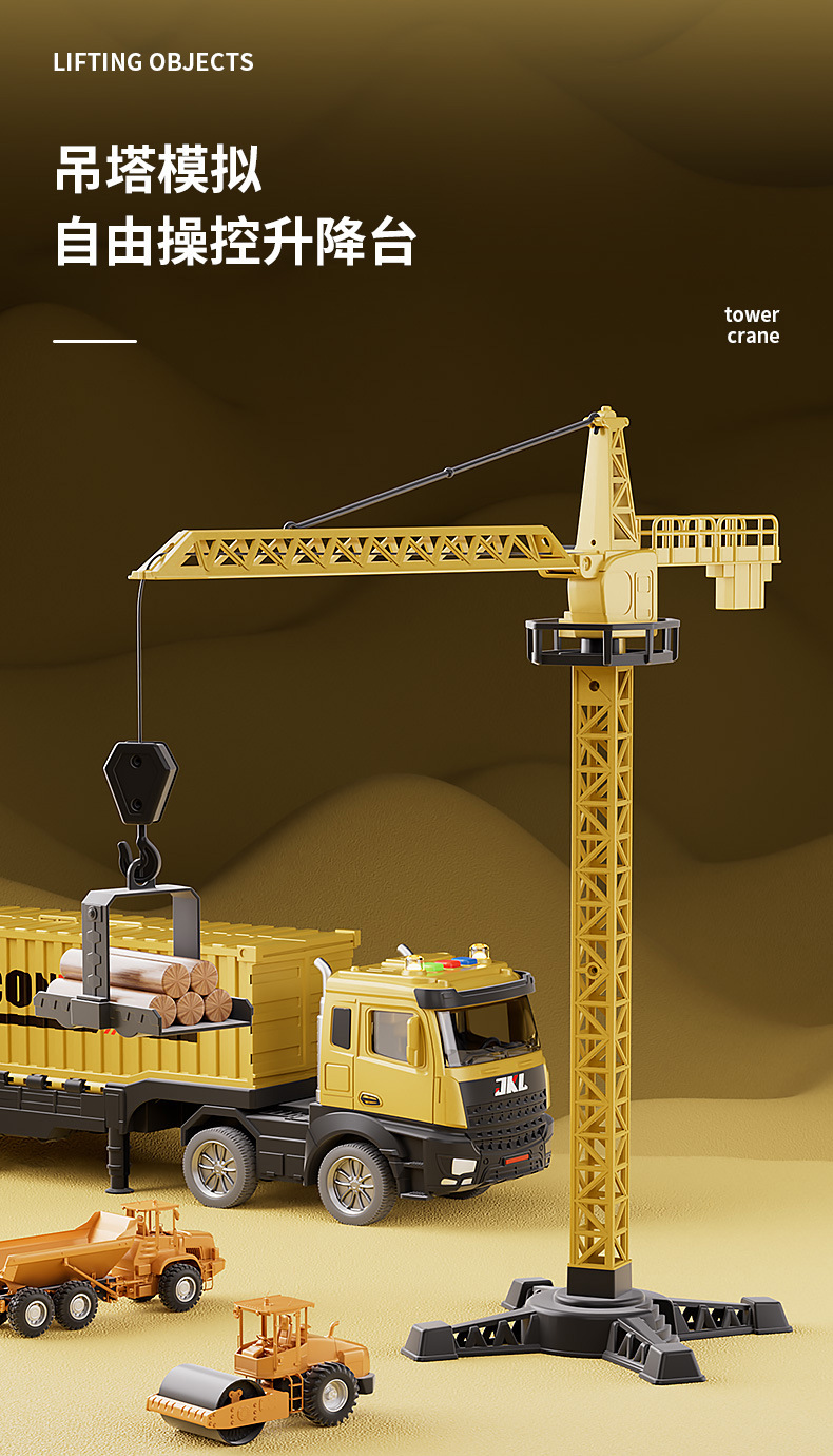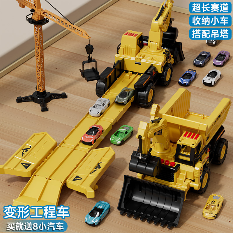 • 노란색 엔지니어링 굴삭기 + 8개의 금속 트럭 + 행잉 타워 [봉인된 선물 상자]