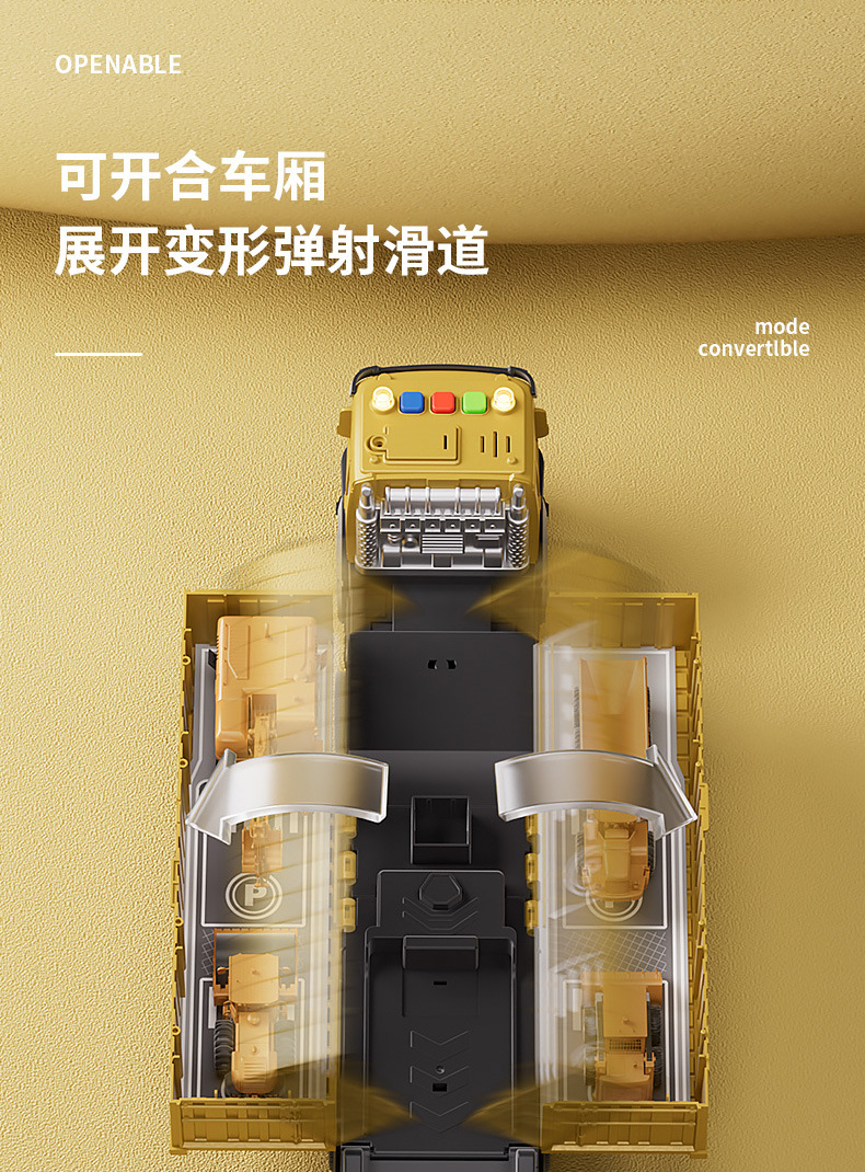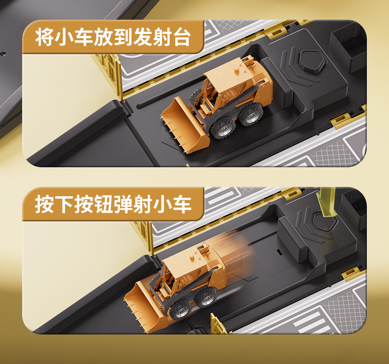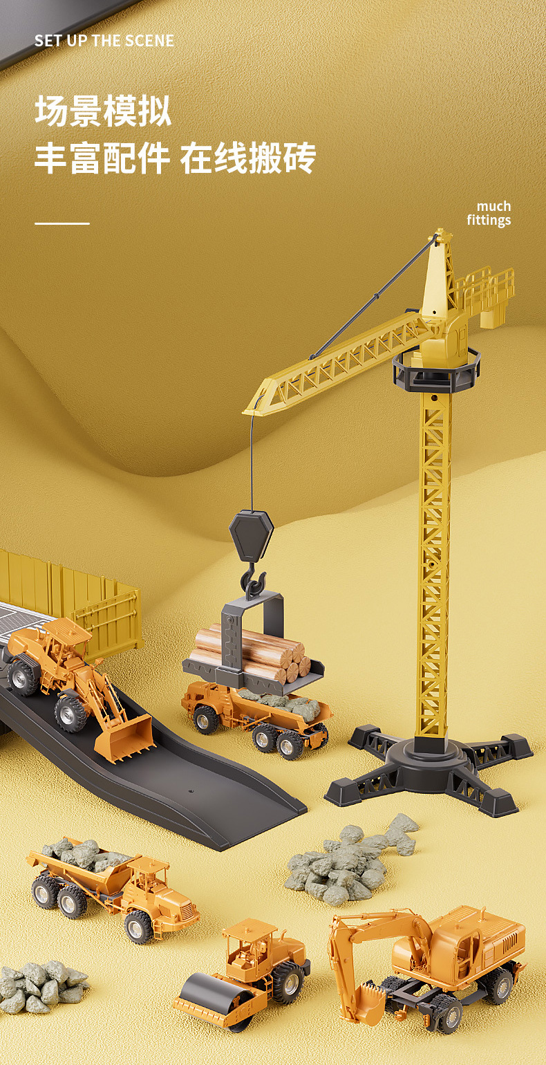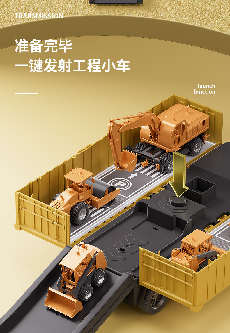 • 노란색 엔지니어링 굴삭기 + 8개의 금속 트럭 + 행잉 타워 [봉인된 선물 상자]