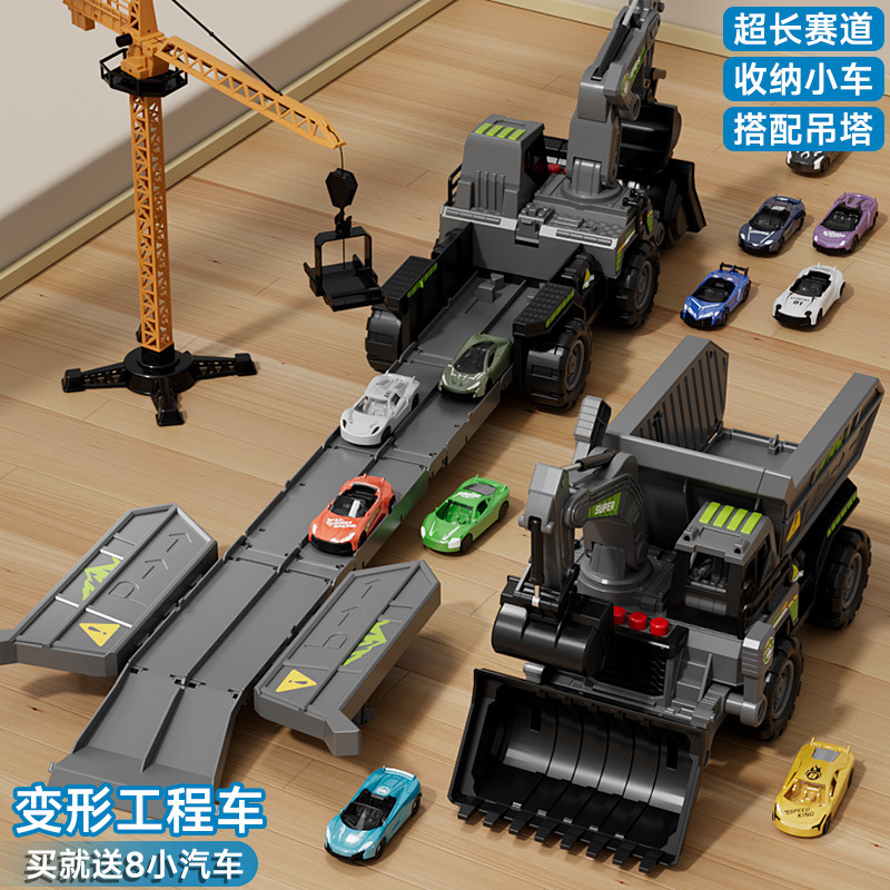 • 그레이 엔지니어링 굴삭기 + 8개의 금속 트럭 + 행잉 타워 [봉인된 선물 상자]