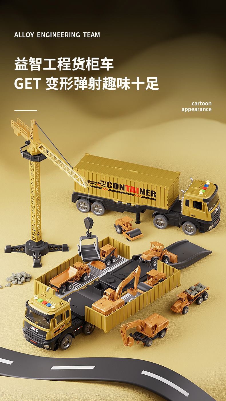 아기 교육 조기 교육 이야기 자동차 엔지니어링 자동차 저장 합금 자동차 소년 컨테이너 발사 자동차 어린이 장난감 선물 상자