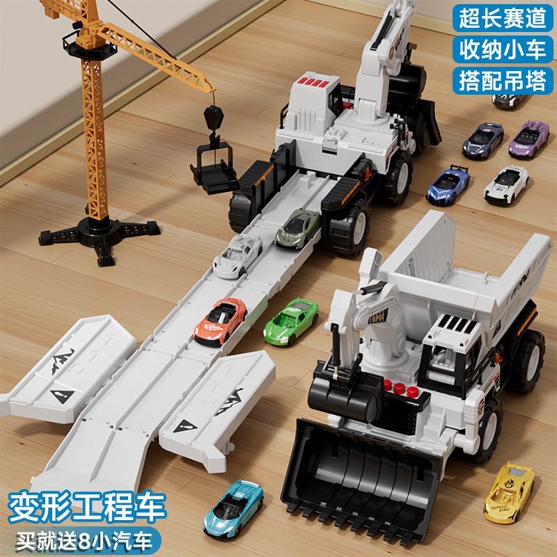 • 화이트 엔지니어링 굴삭기 + 8개의 금속 트럭 + 행잉 타워 [봉인된 선물 상자]