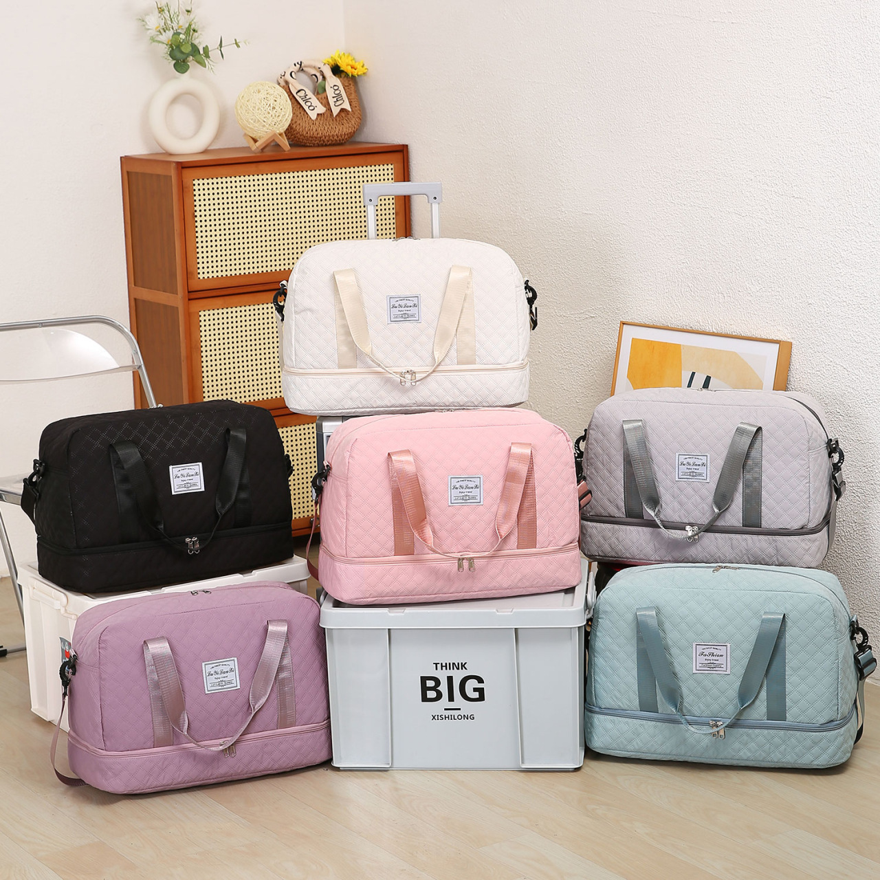 2025 Xiaoxiangfeng 여행 가방 세련된 단거리 휴대용 대용량 트롤리 보관 가방 캐주얼 요가 피트니스 가방