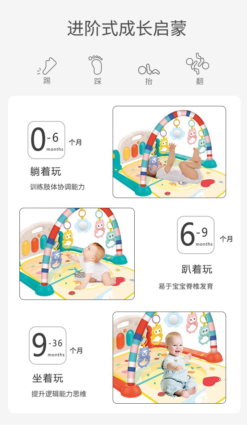 국경 간 조기 교육 페달 음악 피아노 다기능 4-in-one 피아노 피트니스 스탠드 아기 동물 게임 매트 도매스토어 가기