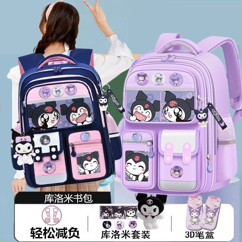 Kuromi 초등학교 가방 1-3-6 학년 여성 경량 통기성 대용량 어린이 배낭 척추 보호대스토어 가기
