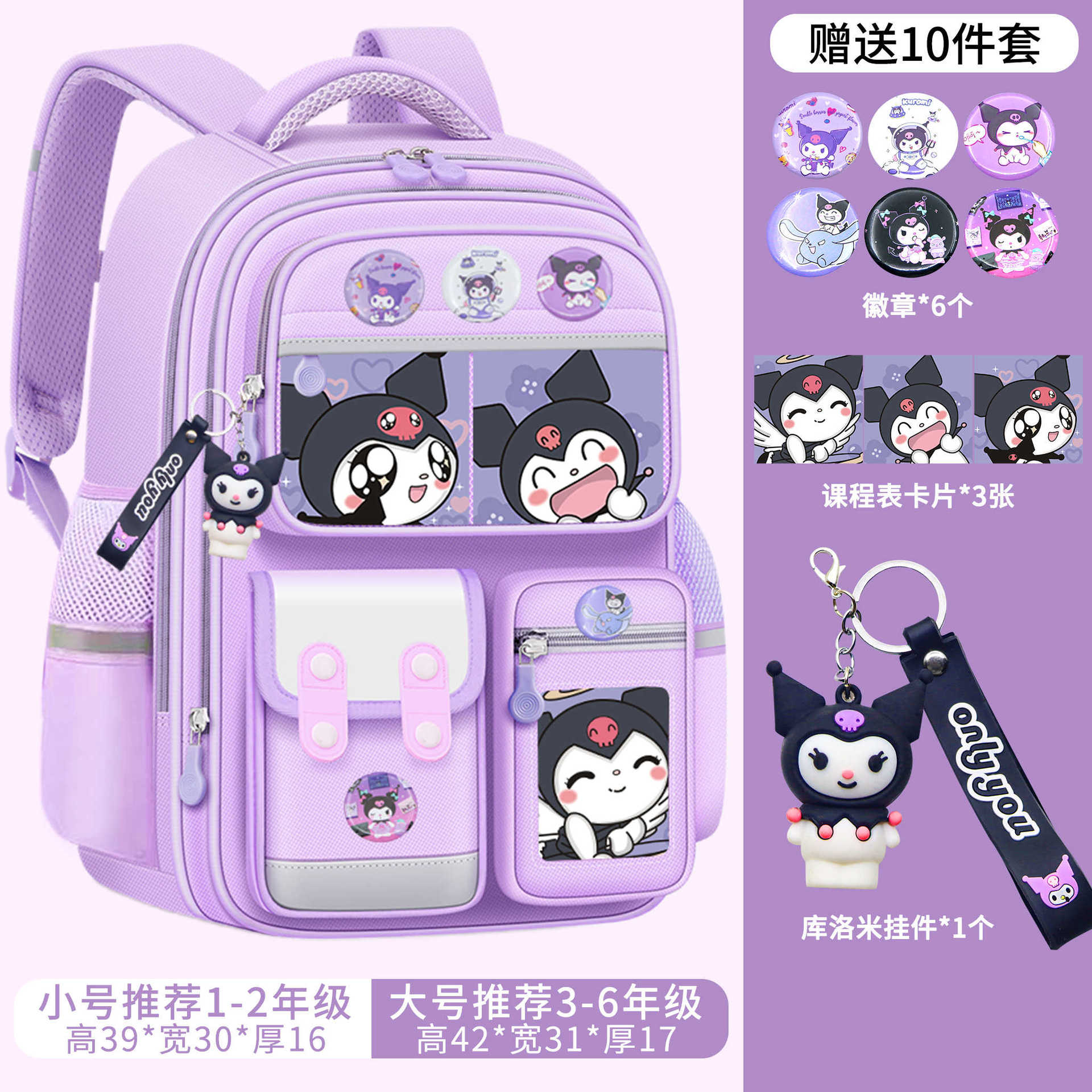 Kuromi 초등학교 가방 1-3-6 학년 여성 경량 통기성 대용량 어린이 배낭 척추 보호대