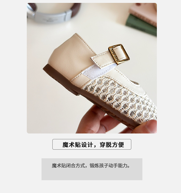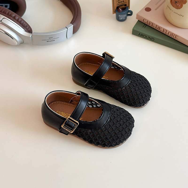 여자 짠 작은 가죽 신발 아기 중공 통기성 신발 2025 여름 어린 소녀 부드러운 바닥 벨크로 공주 신발스토어 가기