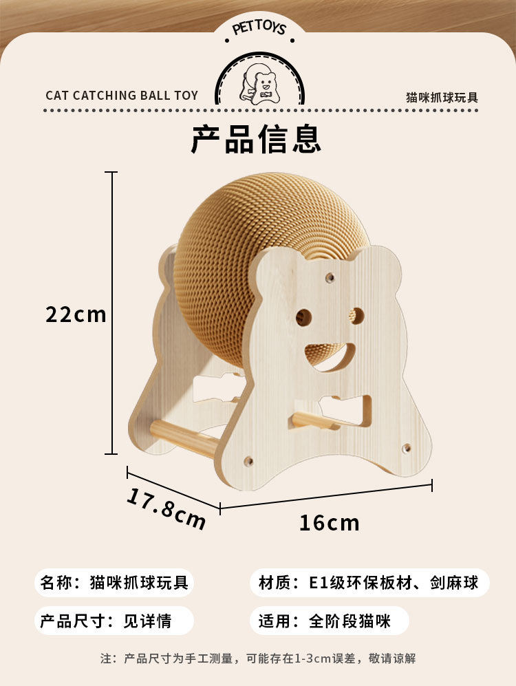 부스러기가 없는 관람차 고양이 스크래치 보드, 삼나무 고양이 장난감, 발톱 연삭 고양이 자가 즐거움 장난감, 고양이 발톱 공, 국경 간 전용스토어 가기
