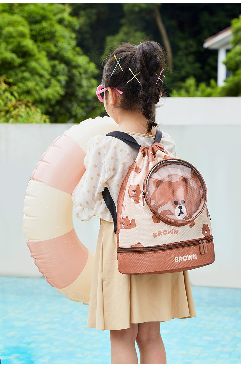 LINE FRIENDS 수영 가방 건식 및 습식 분리 방수 보관 가방 어린이 휴대용 배낭 비치 배낭