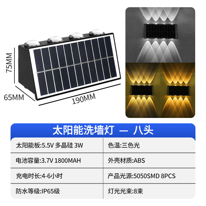태양 야외 벽 램프 야외 안뜰 방수 빌라 정원 벽 램프 풍경 스포트 라이트 장식 주변 벽 램프스토어 가기
