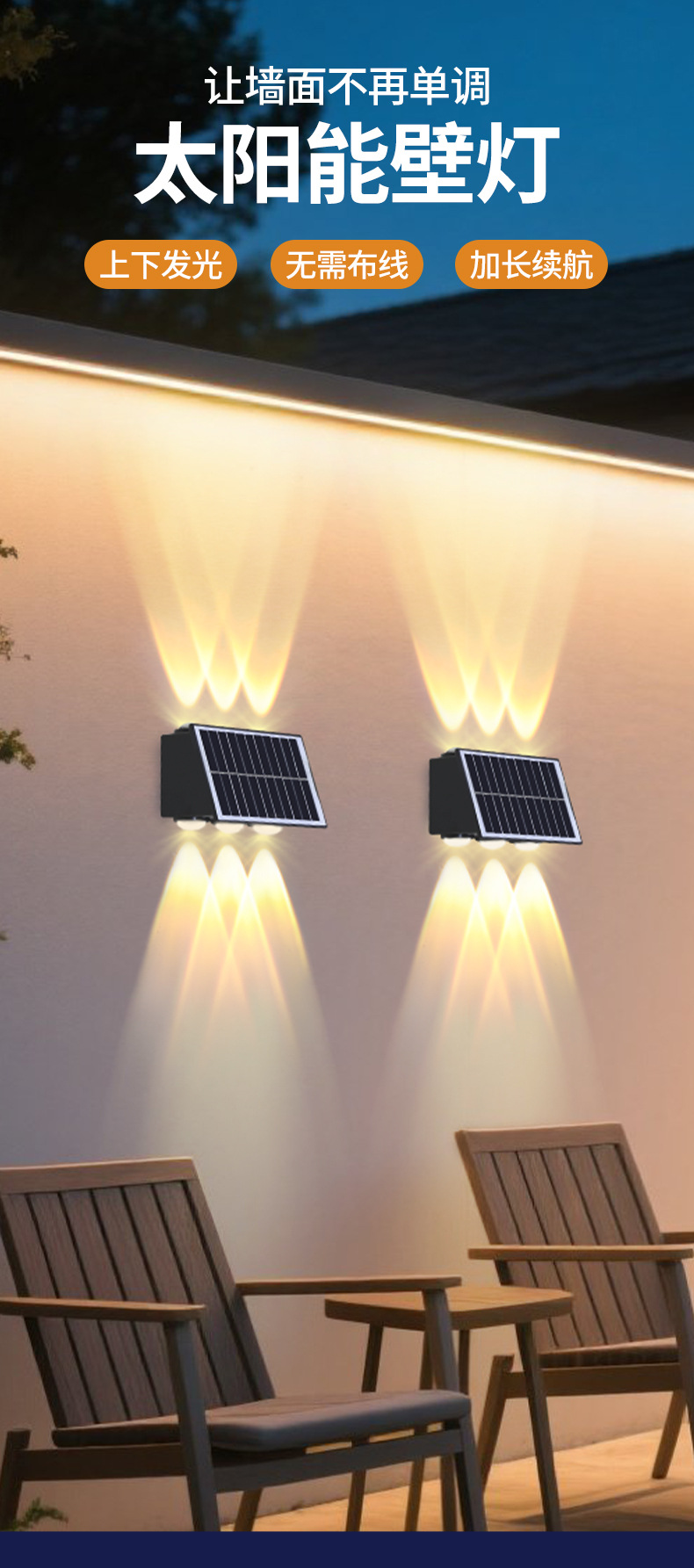 태양 야외 벽 램프 야외 안뜰 방수 빌라 정원 벽 램프 풍경 스포트 라이트 장식 주변 벽 램프