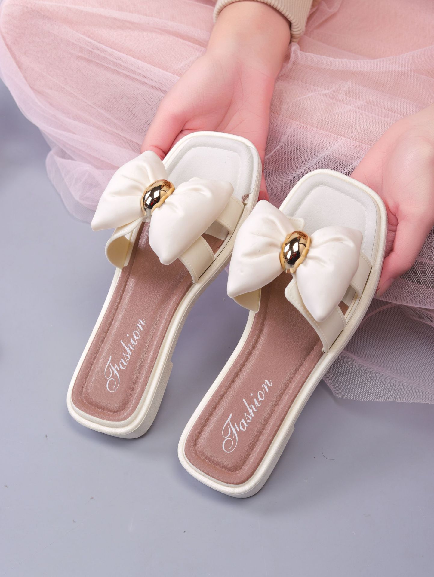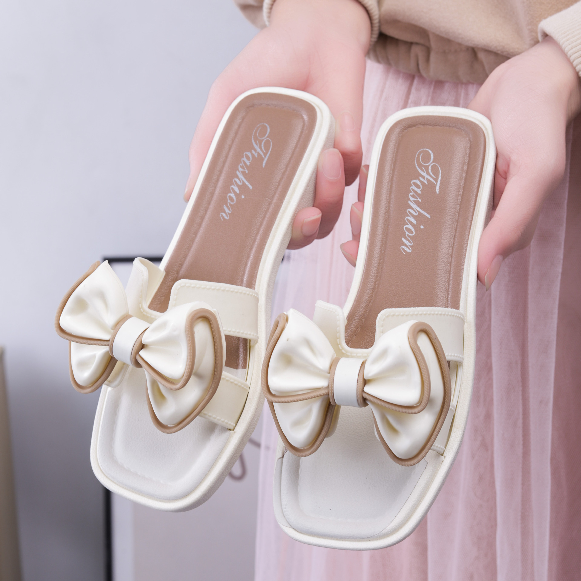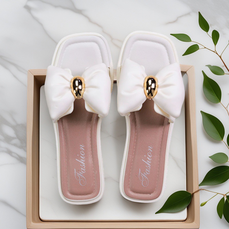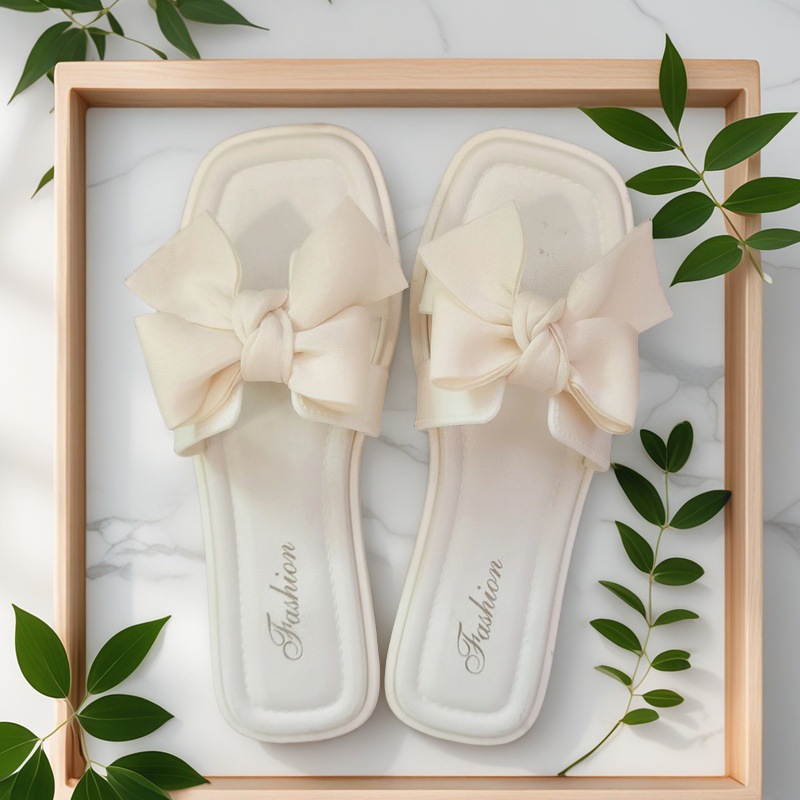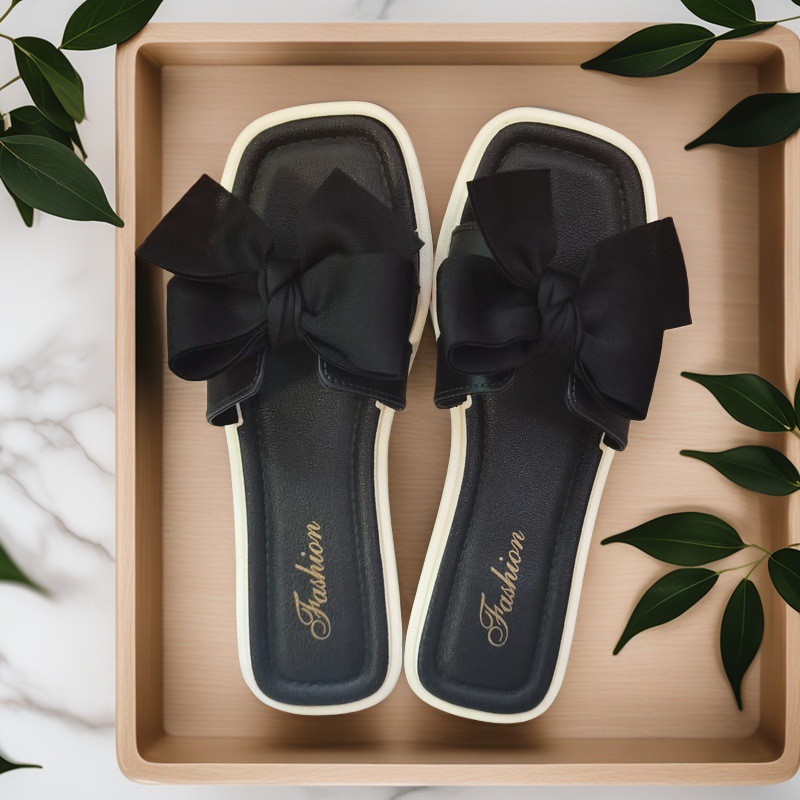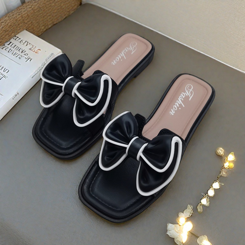 여성용 신상 슬리퍼, 부드러운 밑창, 크로스보더 패션, 여름 여성을 위한 미끄럼 방지 플랫 밑창 나비 사각 버클 샌들스토어 가기