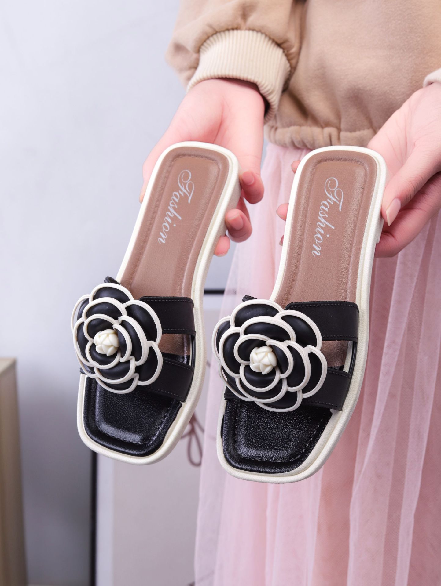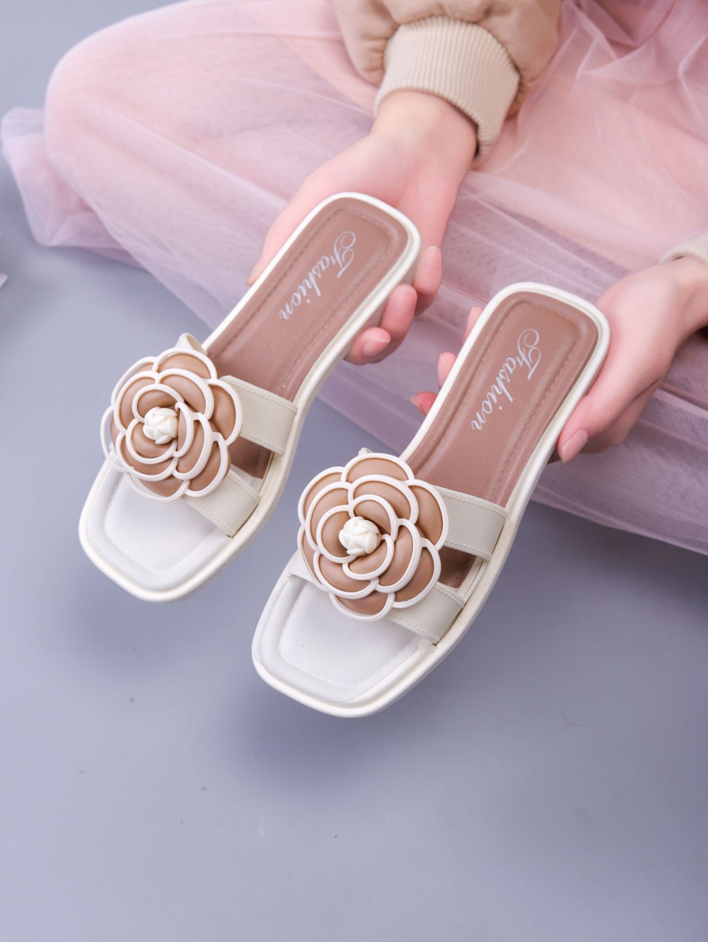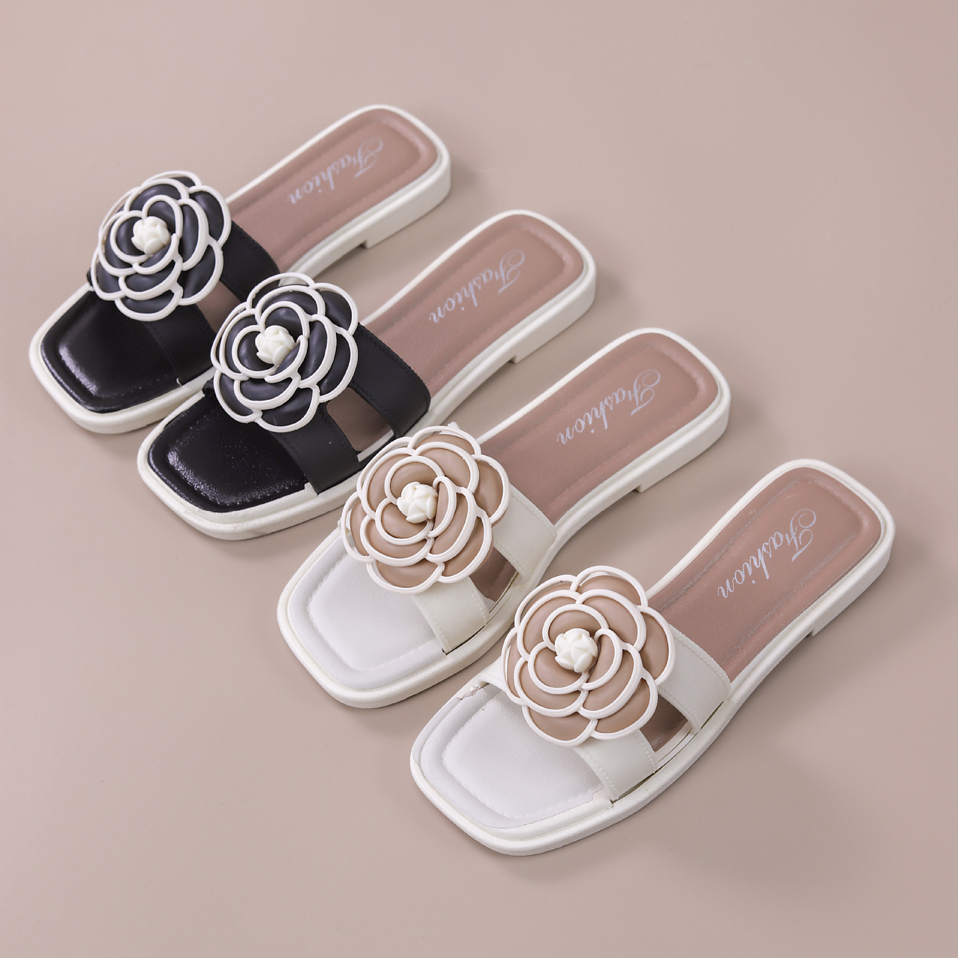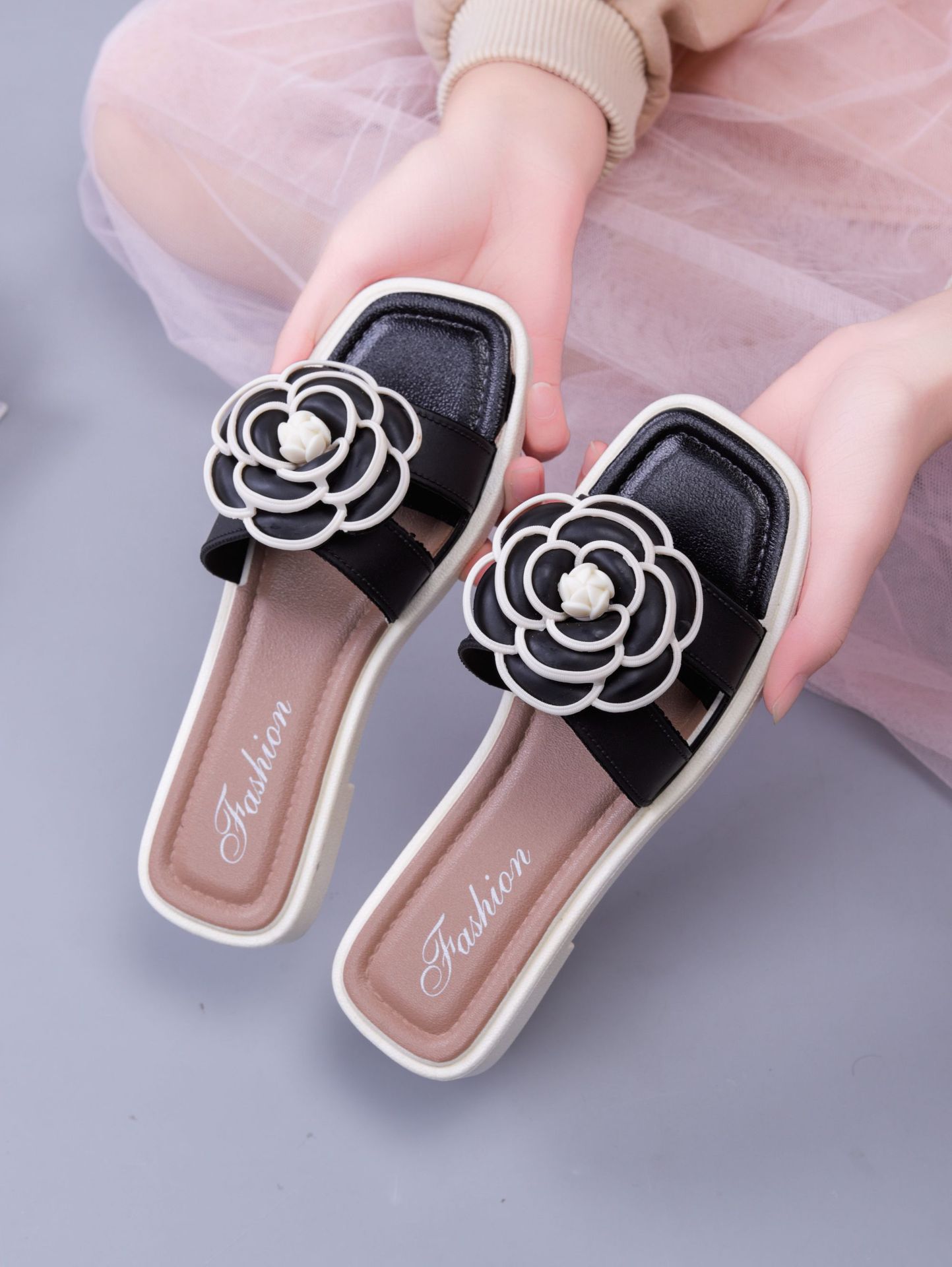 여성용 신상 슬리퍼, 부드러운 밑창, 크로스보더 패션, 여름 여성을 위한 미끄럼 방지 플랫 밑창 나비 사각 버클 샌들스토어 가기