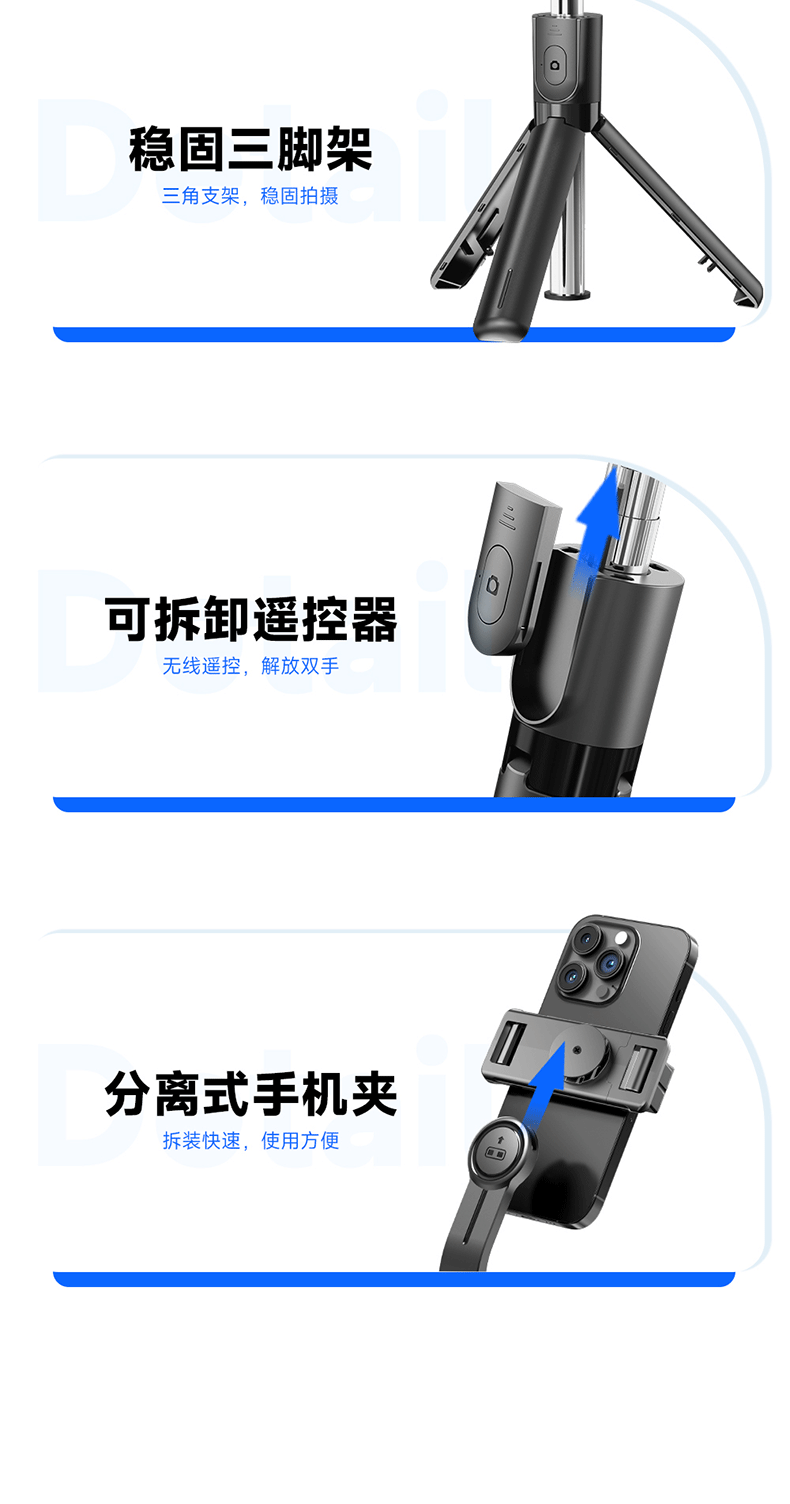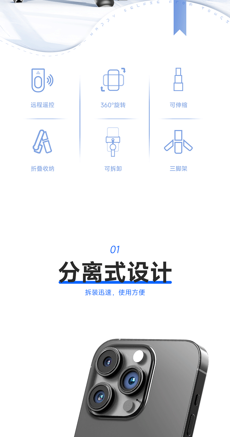 신제품 F01 분리형 무선 원격 제어 삼각대 셀카 스틱 손떨림 방지 회전 사진 여행 셀카 유물스토어 가기