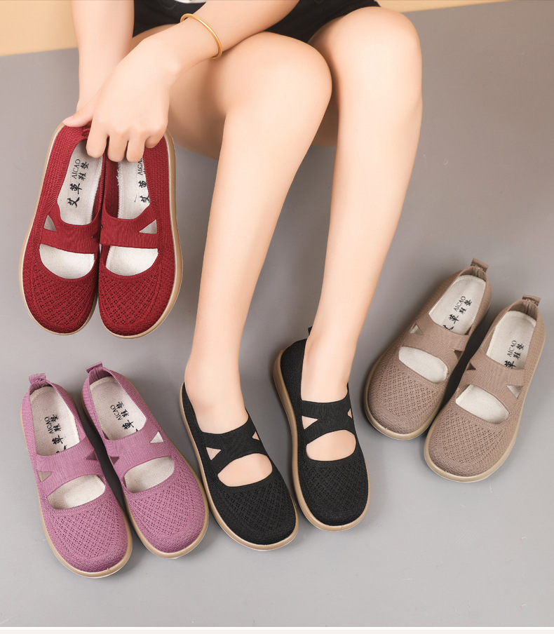 2025 새로운 여름 중년 및 노인 어머니 신발 부드러운 밑창 편안한 플랫 신발 중공 메쉬 통기성 여성 신발 도매스토어 가기