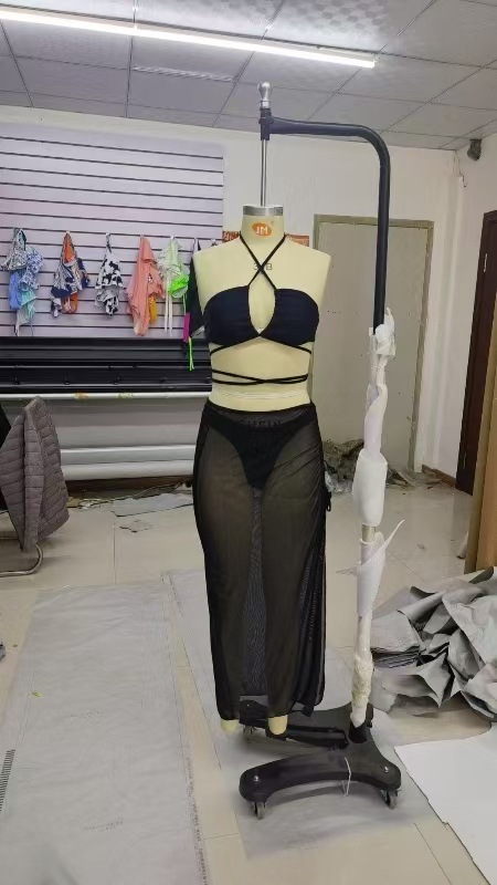 2025 유럽과 미국의 고급 비키니 스플릿 수영복 대외 무역 섹시한 허리 노출 3피스 수영복 롱 스커트 레이스 업 수영복 러시아