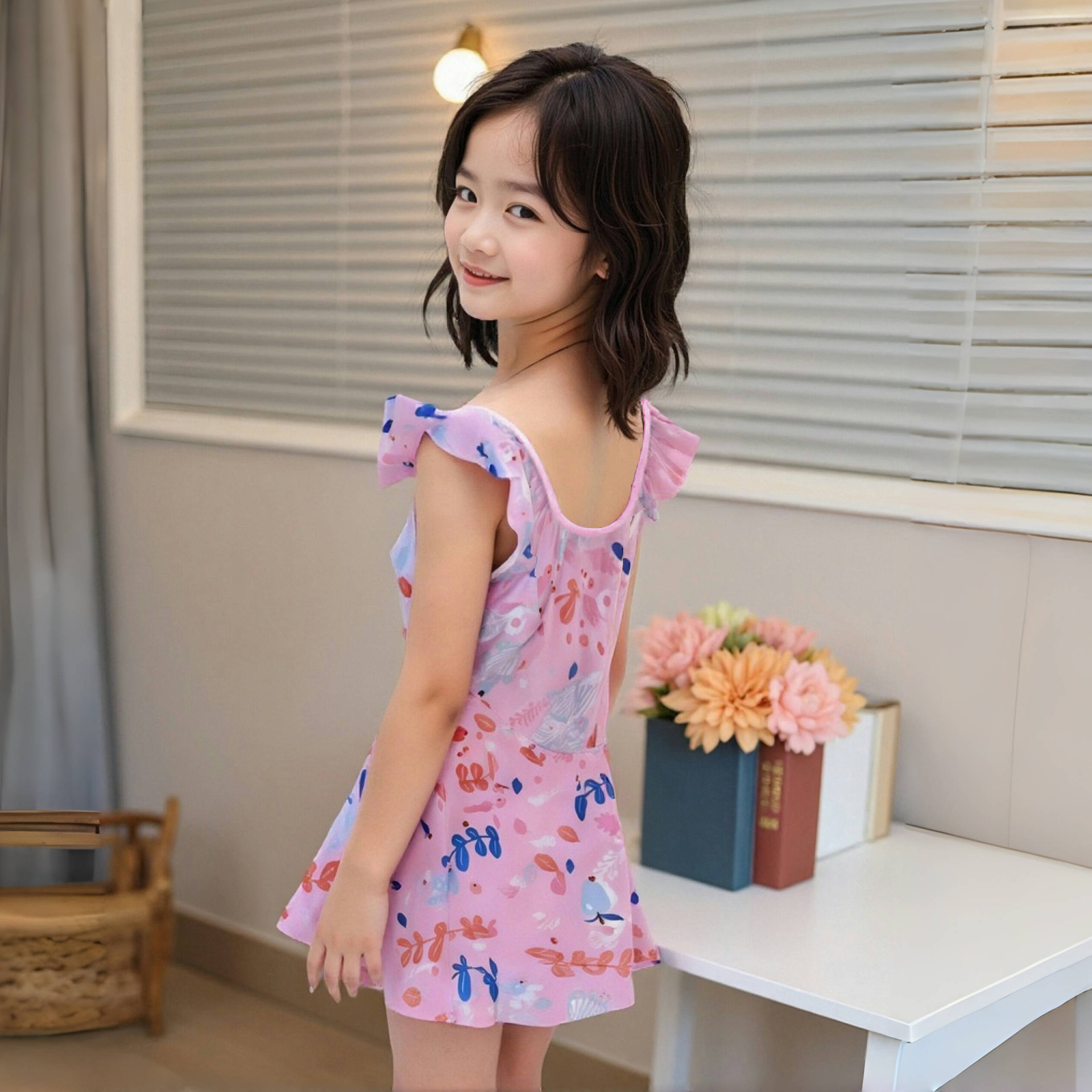 아동용 수영복, 여아용 귀여운 꽃무늬 원피스 작은 플라잉 슬리브 수영복, 중소형 아동용 스커트 자외선 차단 수영 트레이닝 슈트