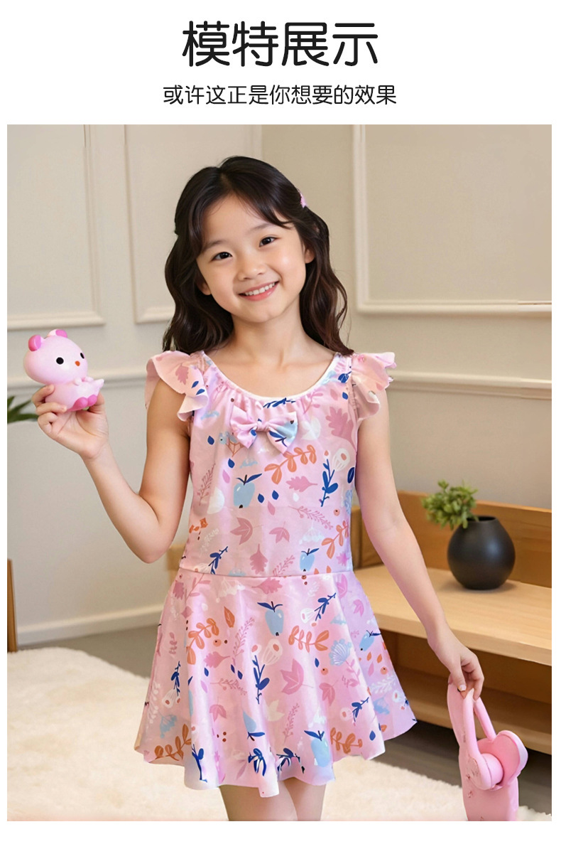아동용 수영복, 여아용 귀여운 꽃무늬 원피스 작은 플라잉 슬리브 수영복, 중소형 아동용 스커트 자외선 차단 수영 트레이닝 슈트스토어 가기