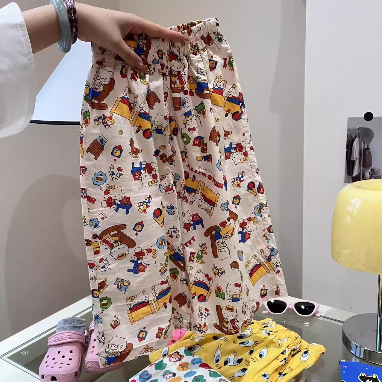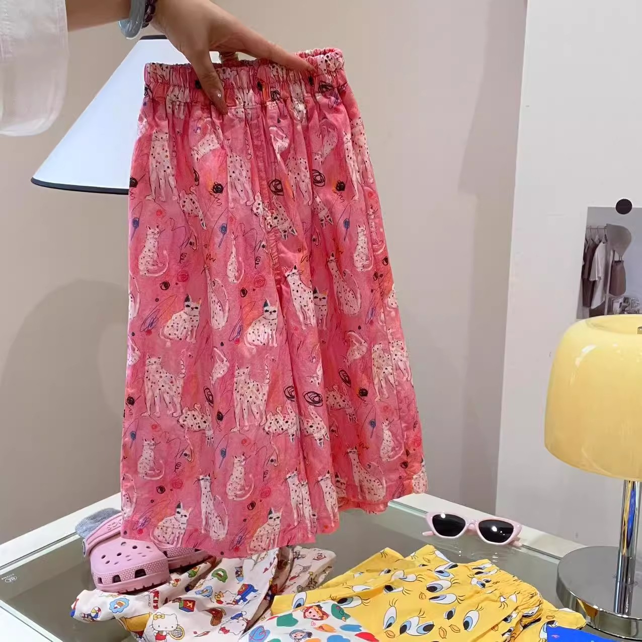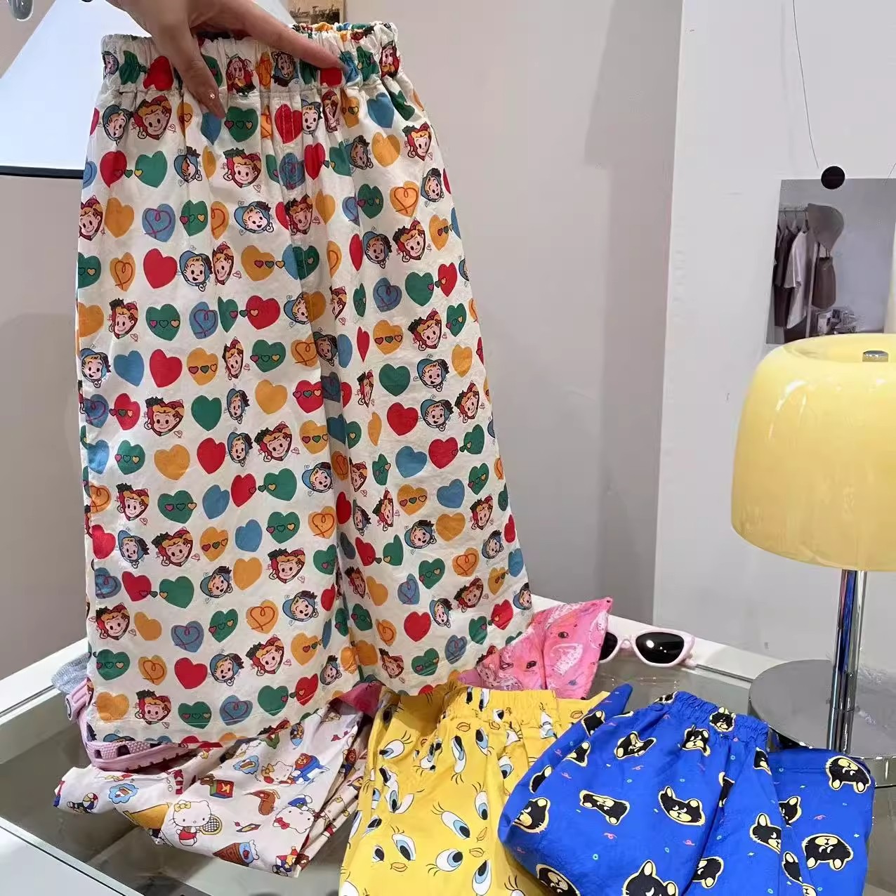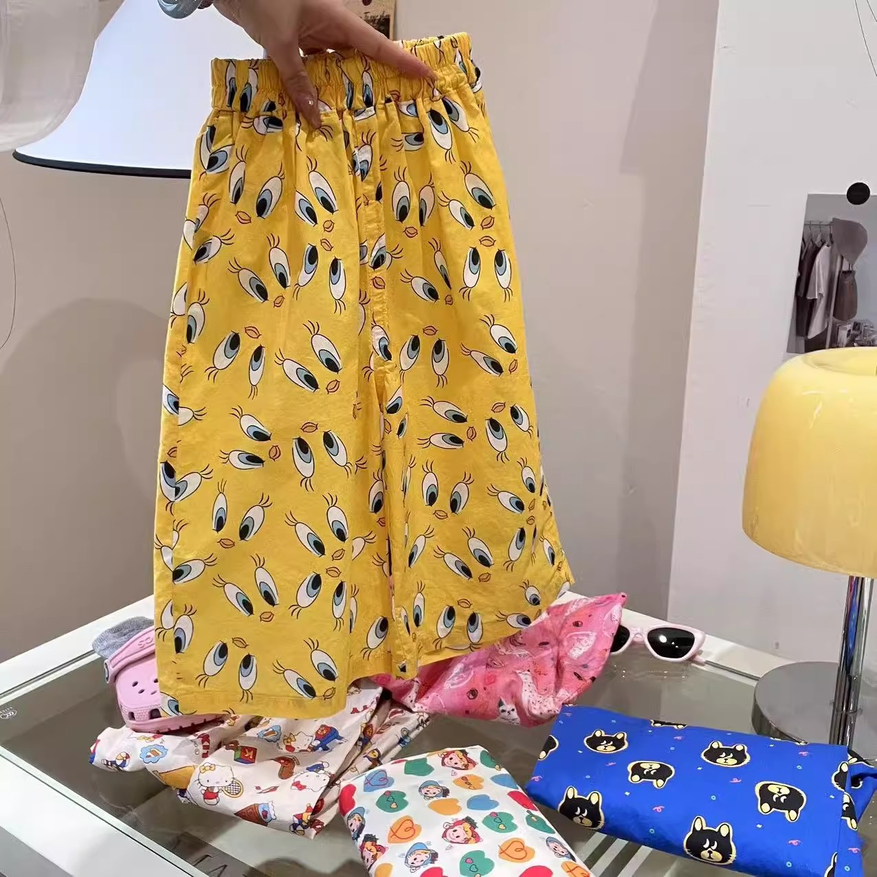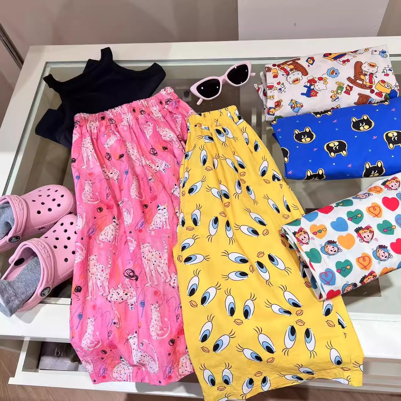 어린이 여름 모기 방지 바지 2026 여아용 한국 스타일 아동복 세련된 만화 프린트 캐주얼 통기성 루즈핏 긴 바지스토어 가기