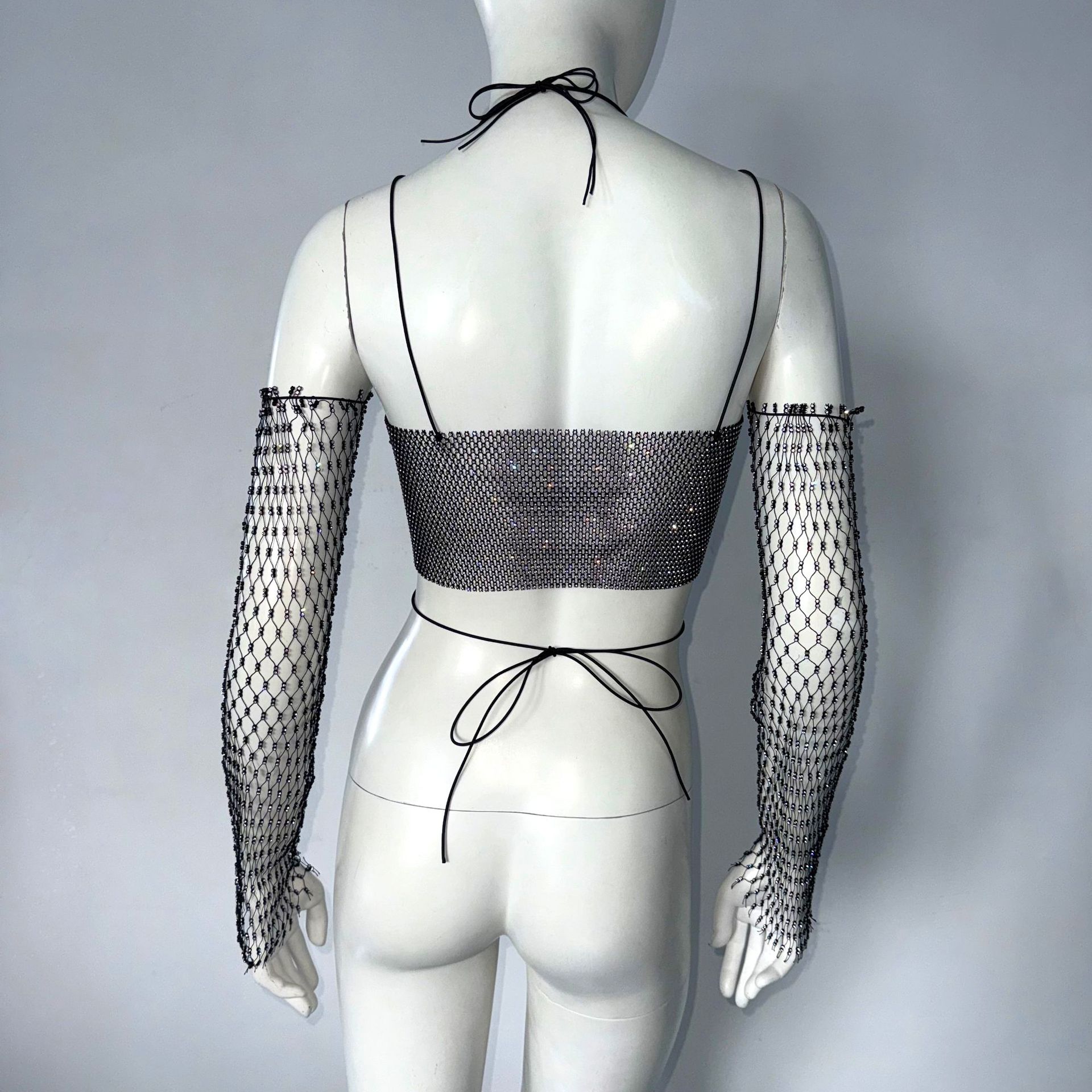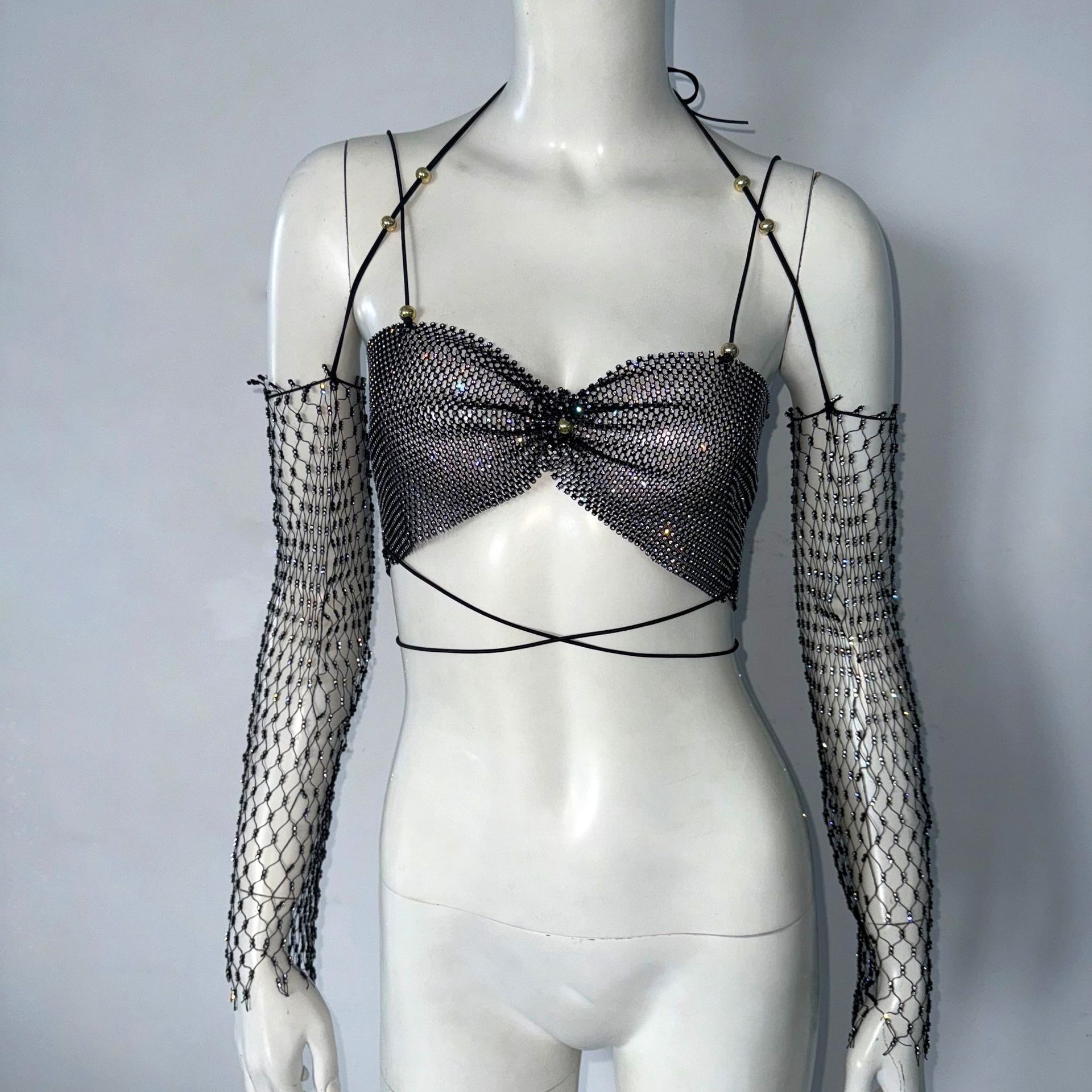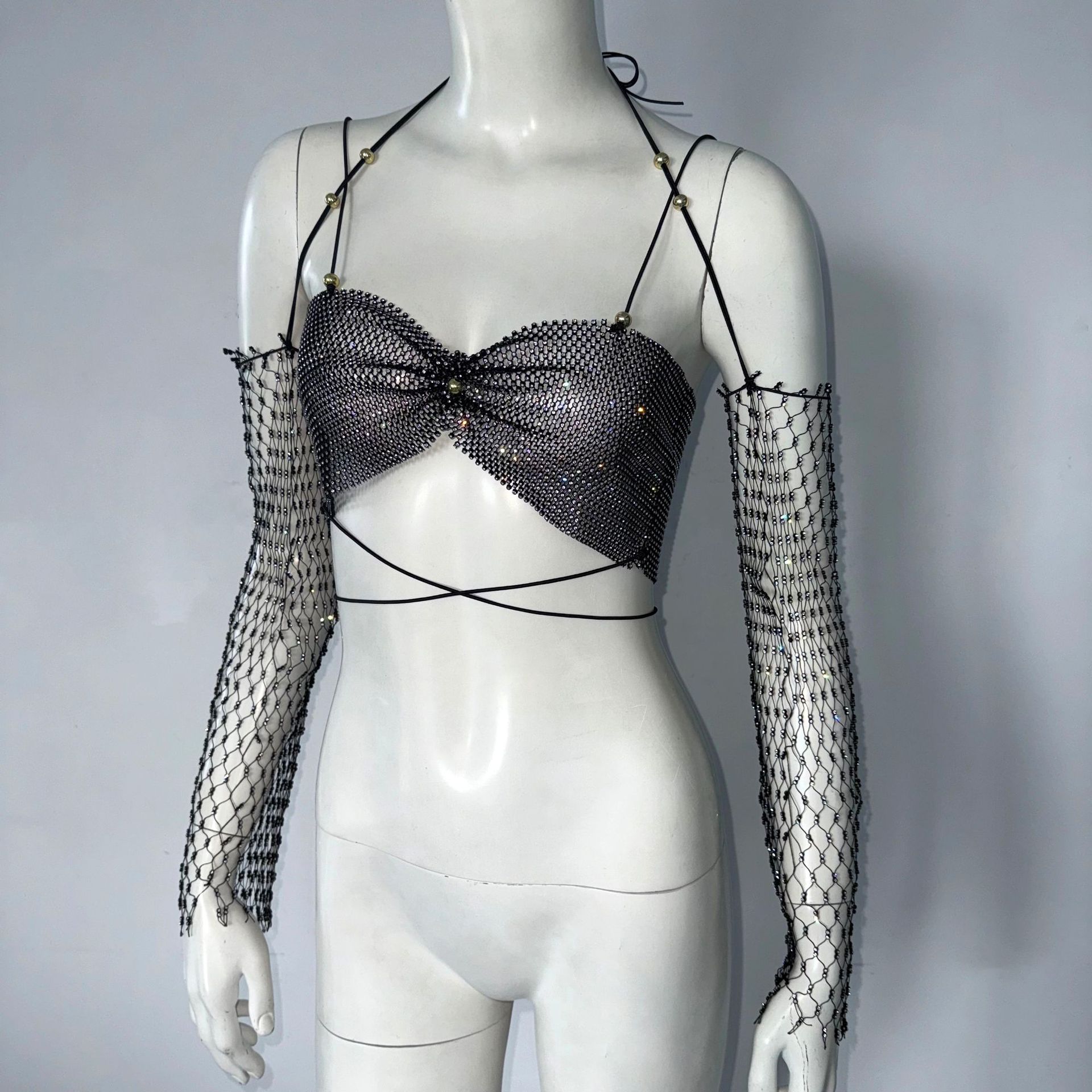 국경 간 여성 의류 핫 유럽과 미국 탑 아마존 새로운 스타일의 망사 다이아몬드 서스펜더 섹시한 핫 소녀 탑 투피스 세트