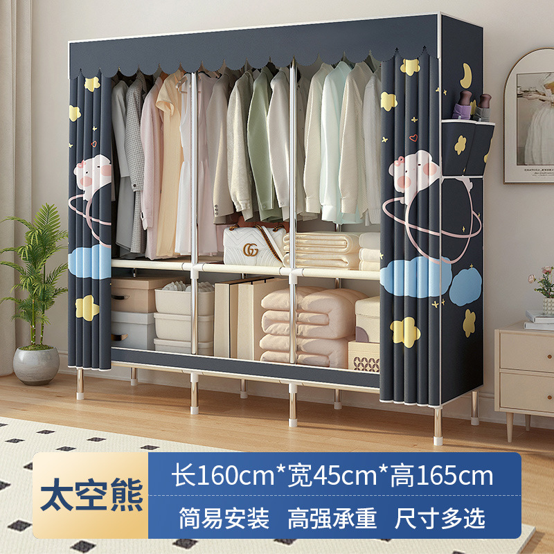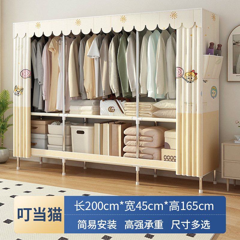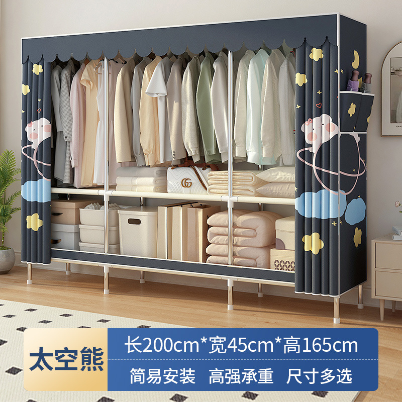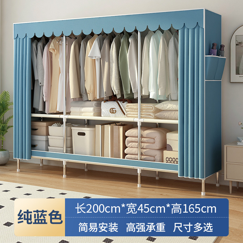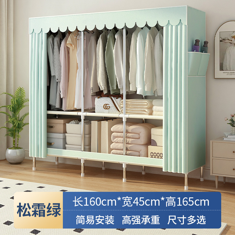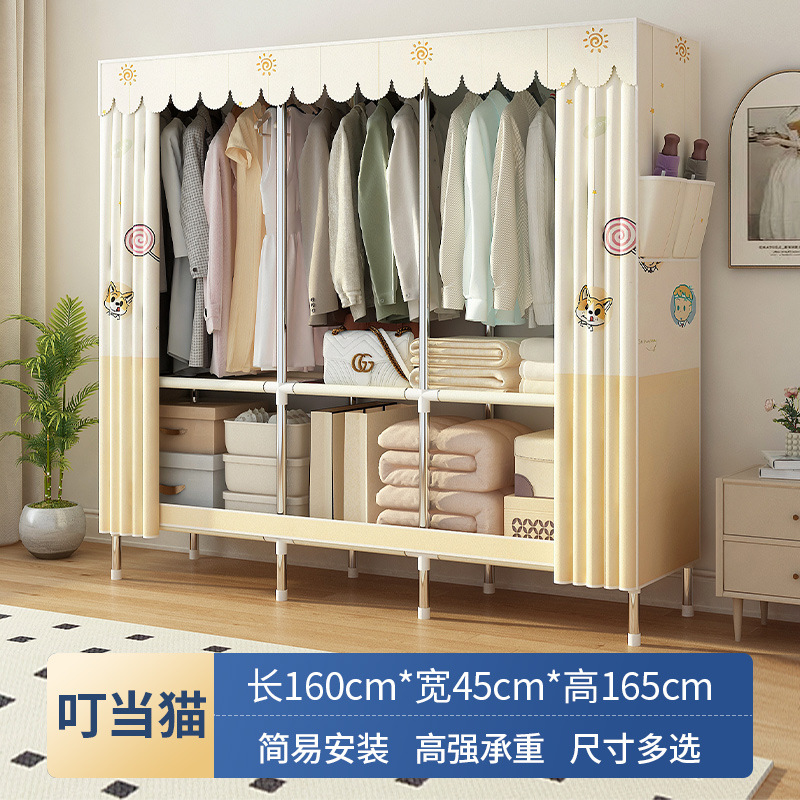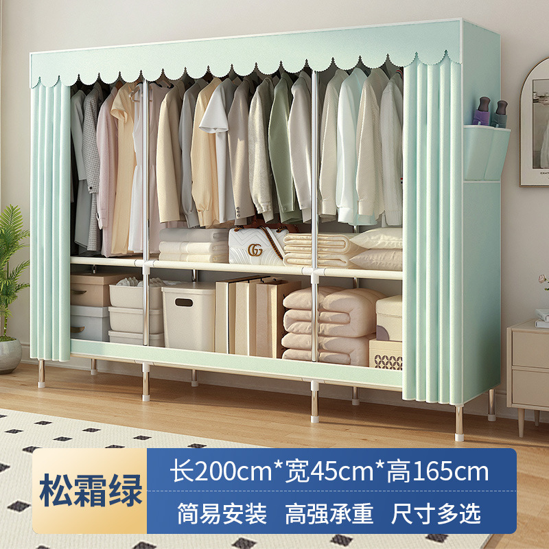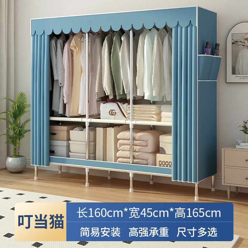 2025 새로운 강관 천 옷장 간단한 옷장 조립 옷장 홈 침실 보관 캐비닛 임대 단일 캐비닛