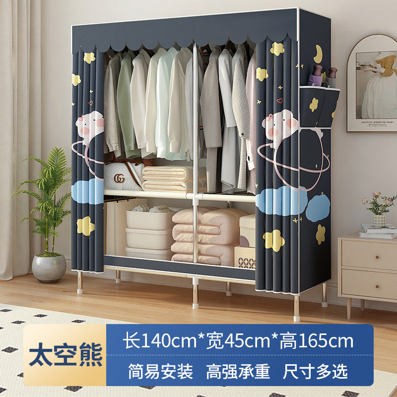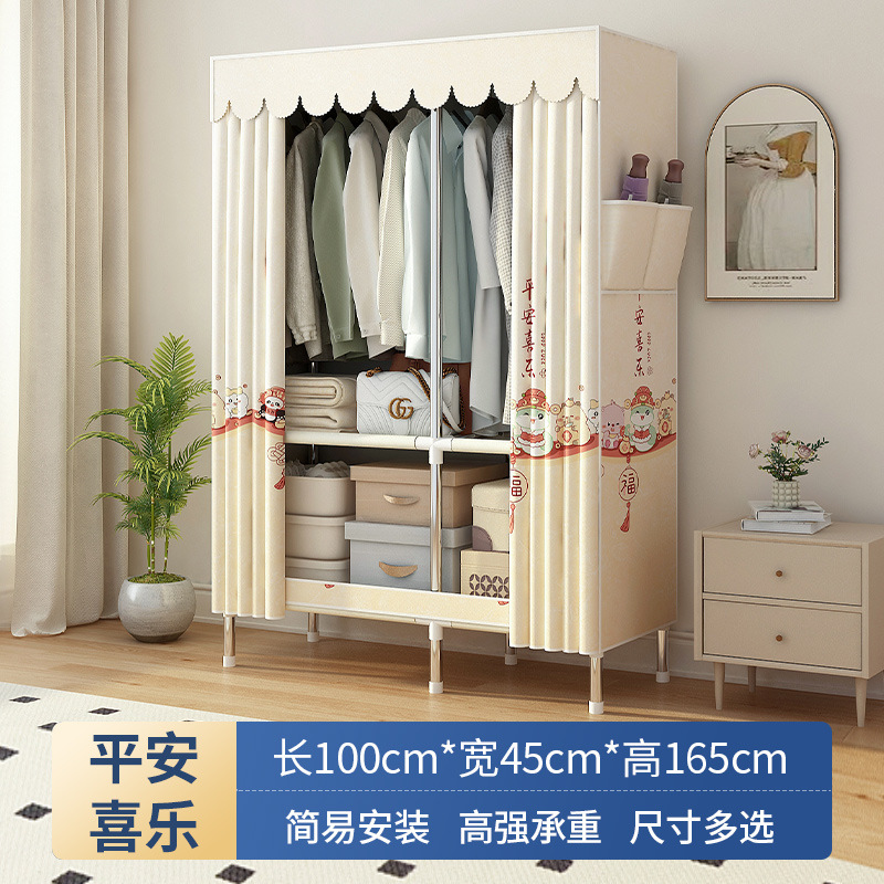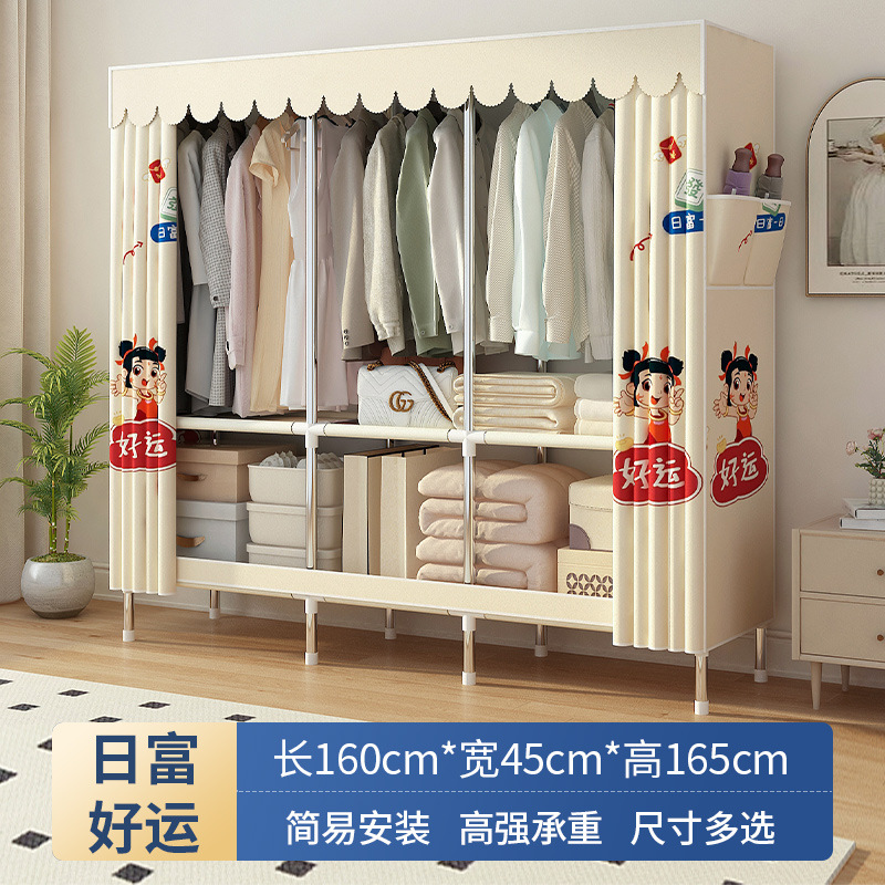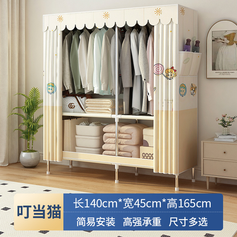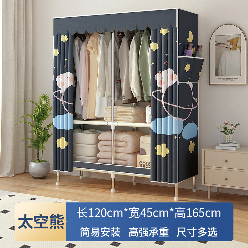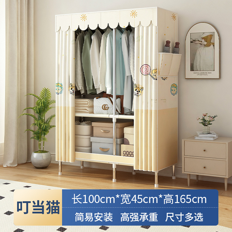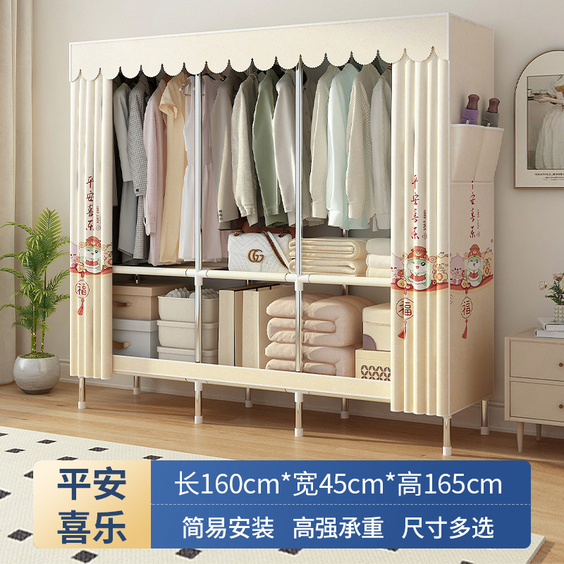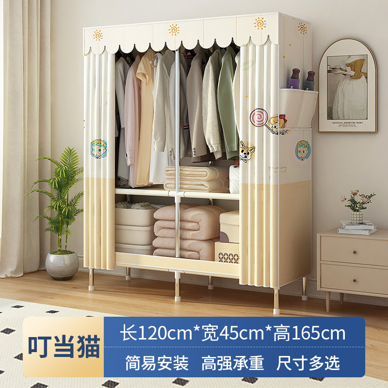 2025 새로운 강관 천 옷장 간단한 옷장 조립 옷장 홈 침실 보관 캐비닛 임대 단일 캐비닛