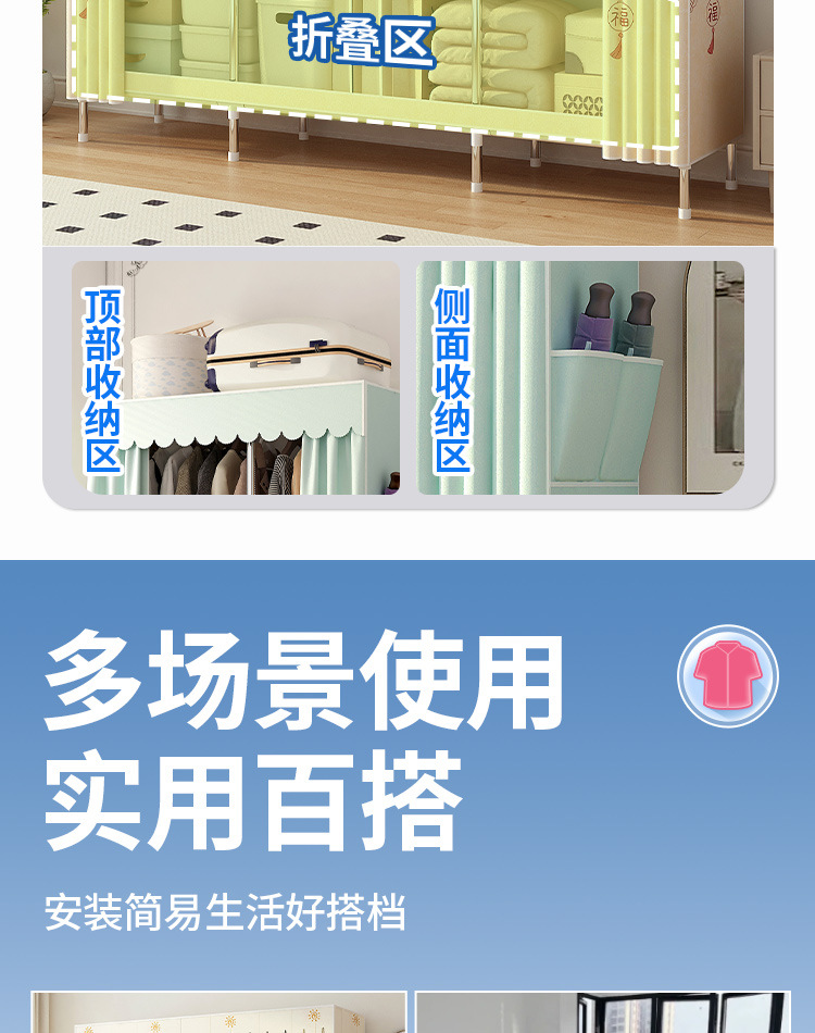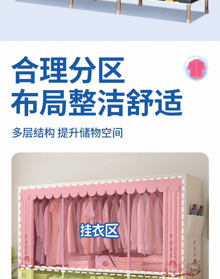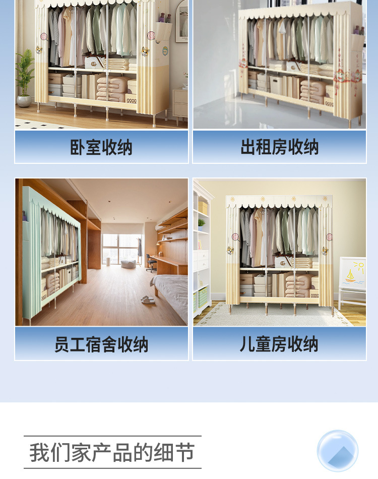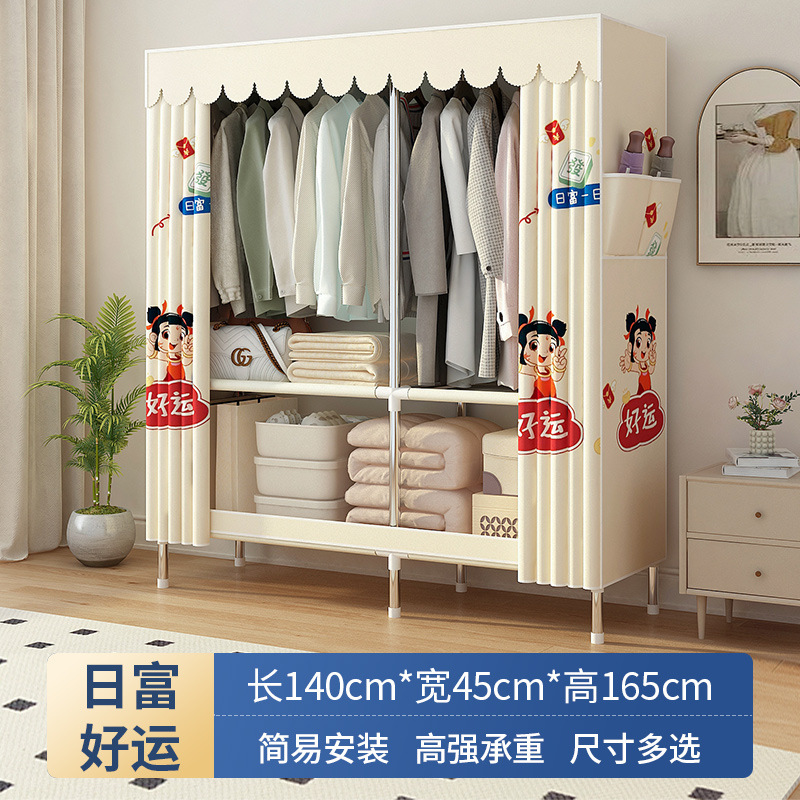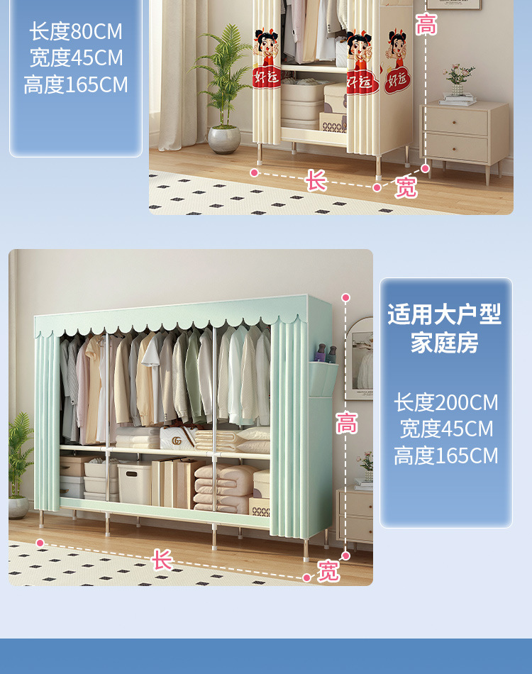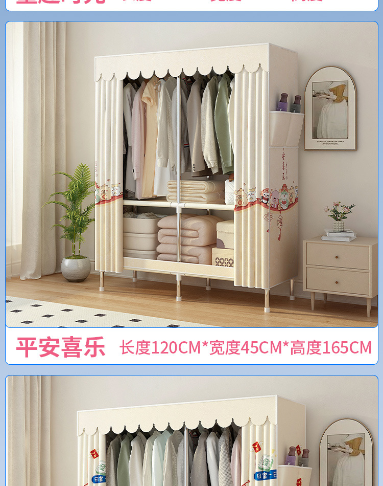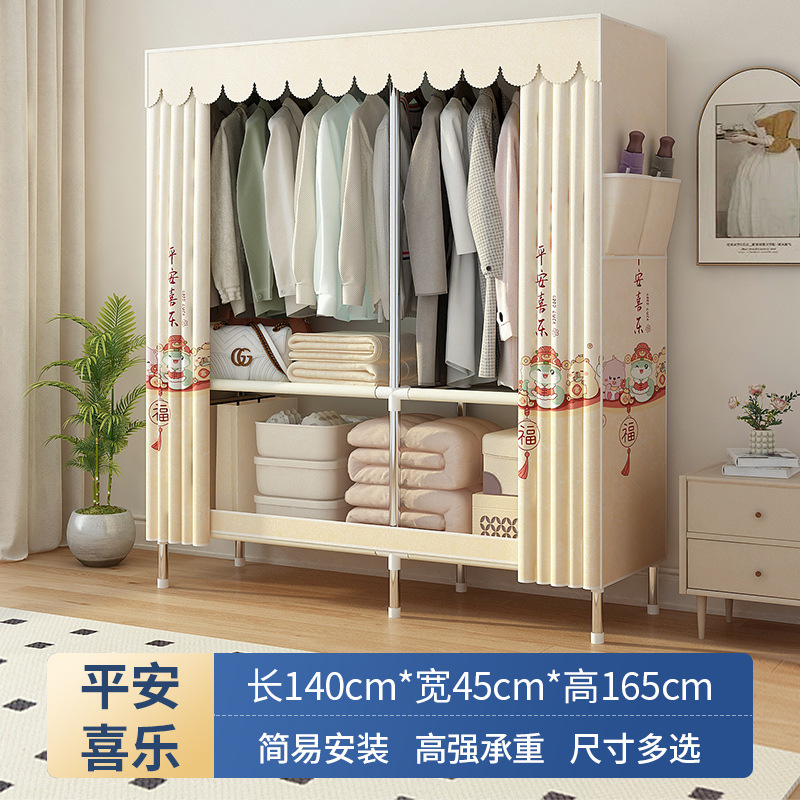 2025 새로운 강관 천 옷장 간단한 옷장 조립 옷장 홈 침실 보관 캐비닛 임대 단일 캐비닛