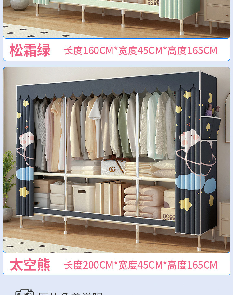 2025 새로운 강관 천 옷장 간단한 옷장 조립 옷장 홈 침실 보관 캐비닛 임대 단일 캐비닛스토어 가기