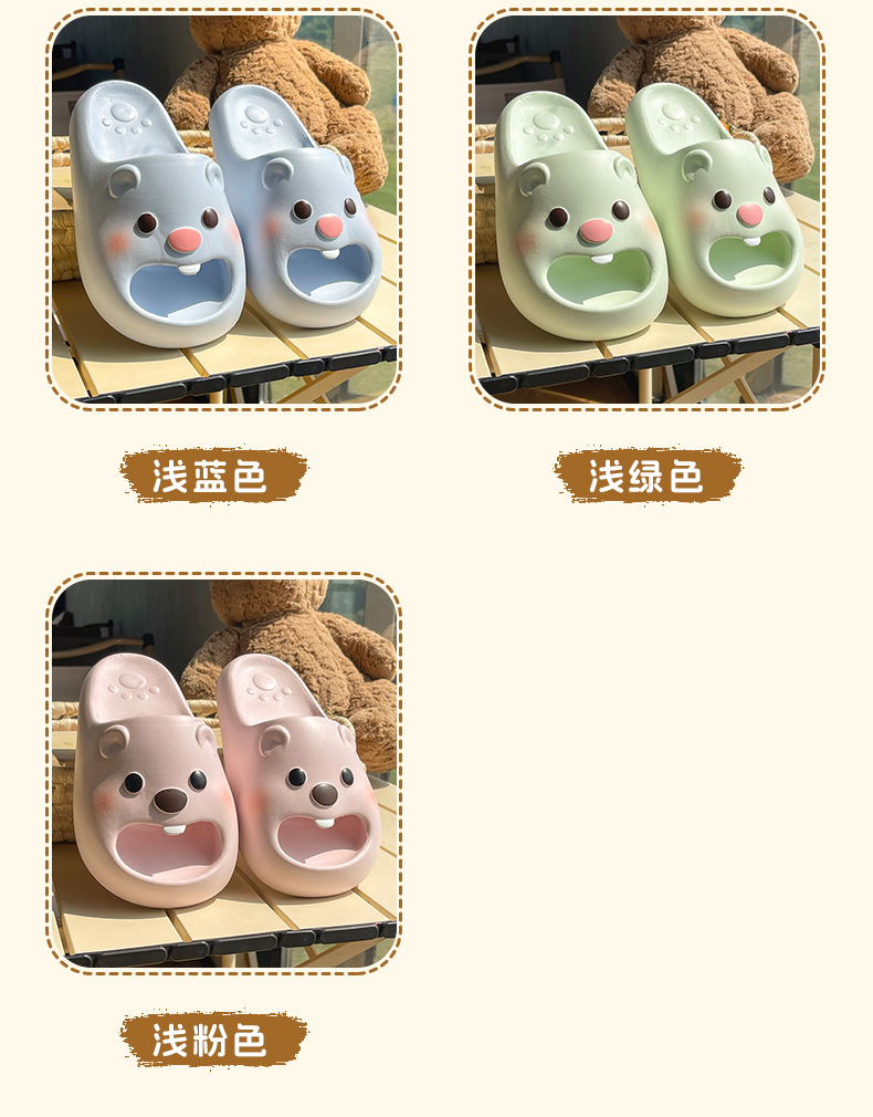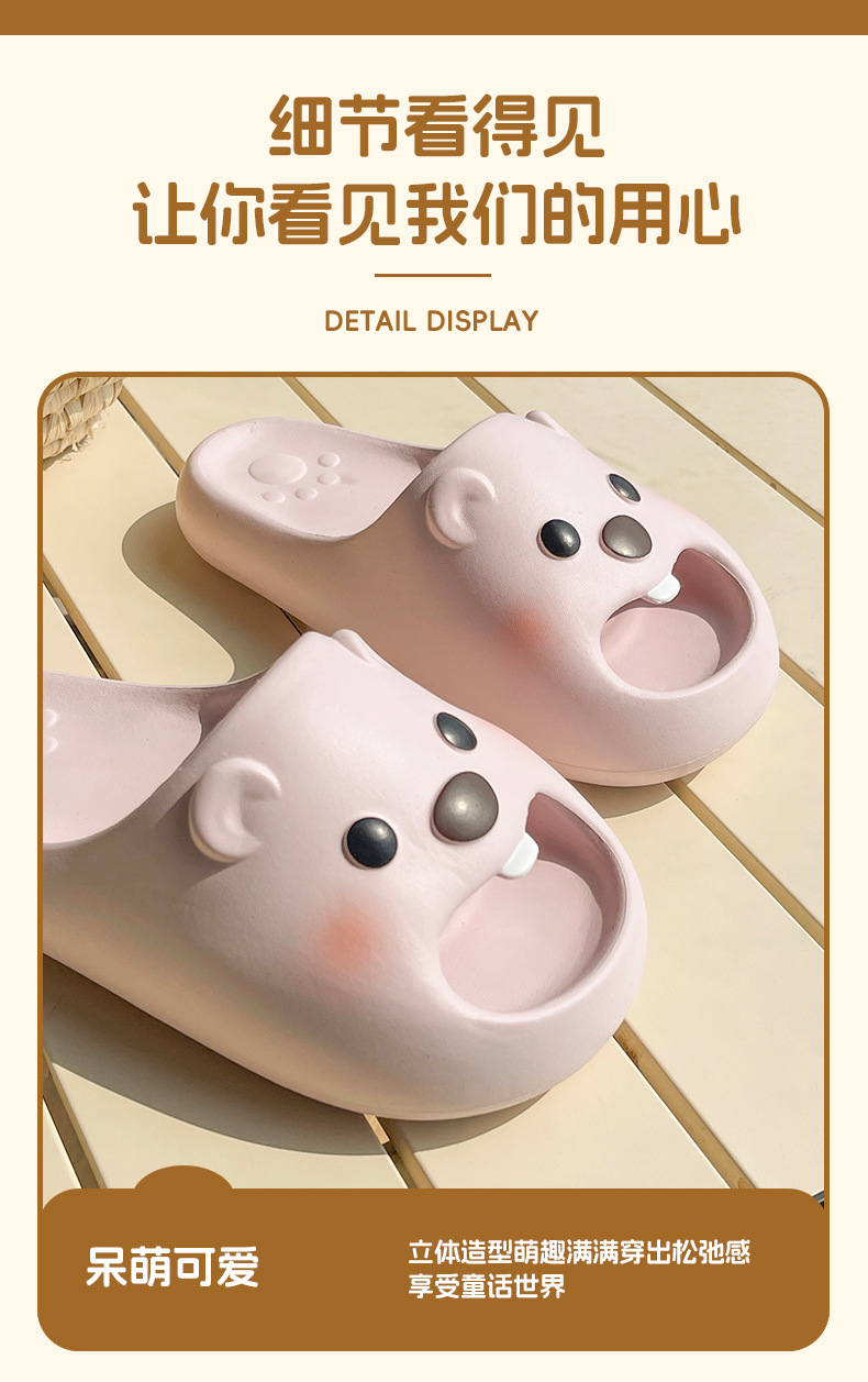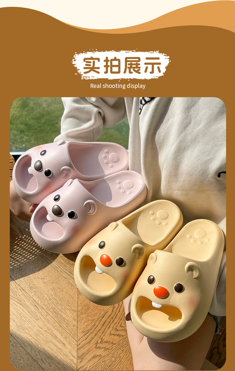 여름 여성용 여성용 작은 비버 슬리퍼 2025 새로운 귀여운 실내 홈 여성용 미끄럼 방지 두꺼운 밑창 샌들스토어 가기