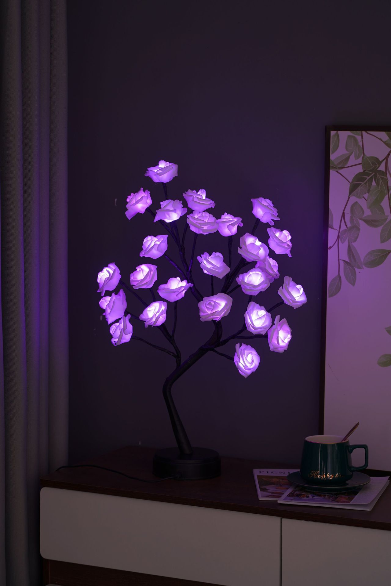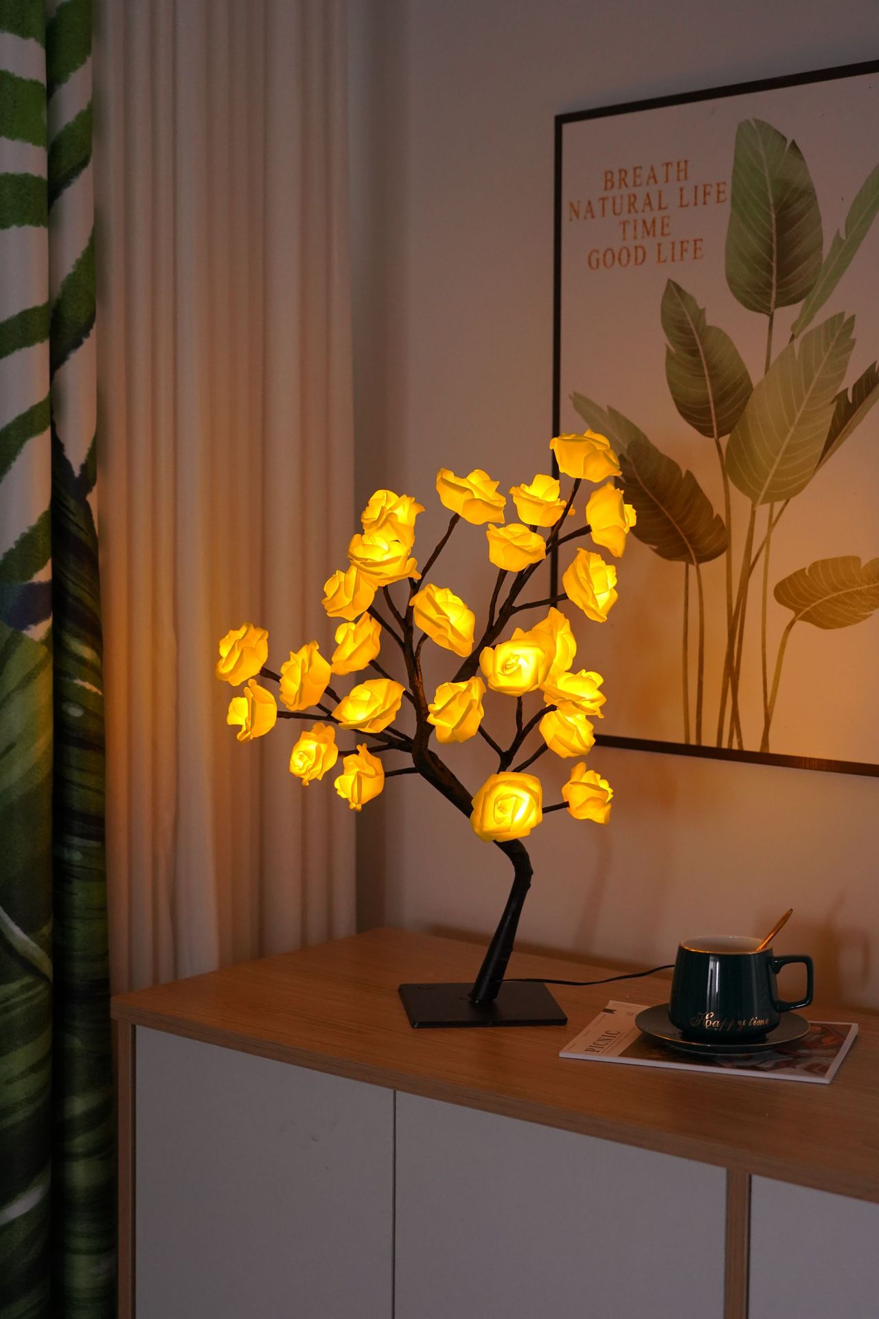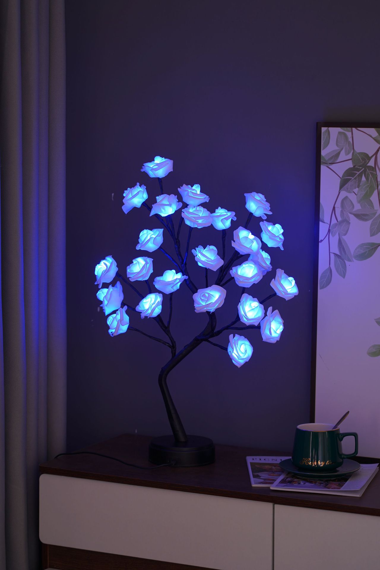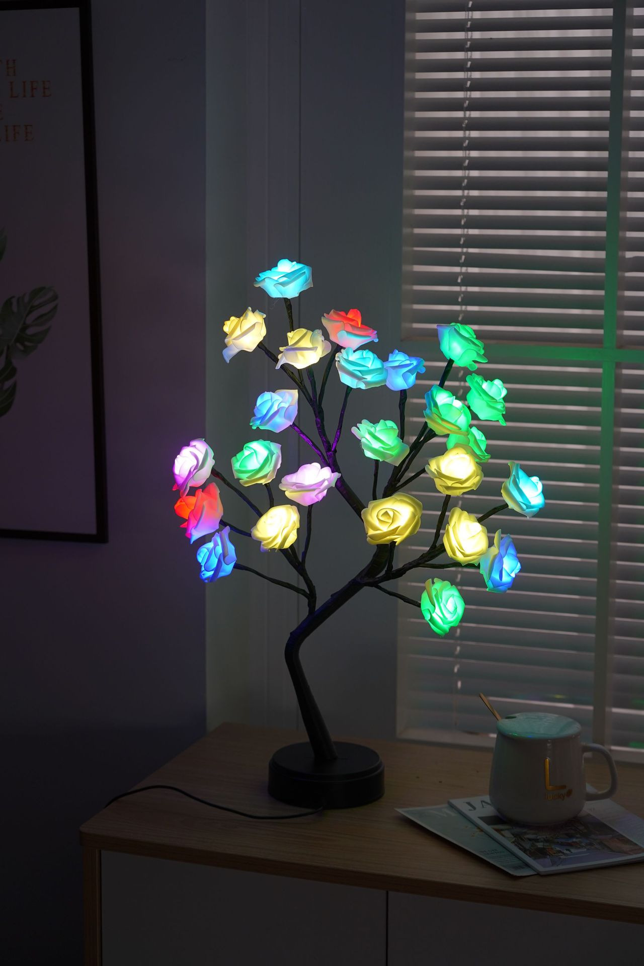 국경 간 랜턴 분리형 플라스틱 베이스 USB 스위치 시뮬레이션 장미 나무 램프 장식 야간 조명 램프