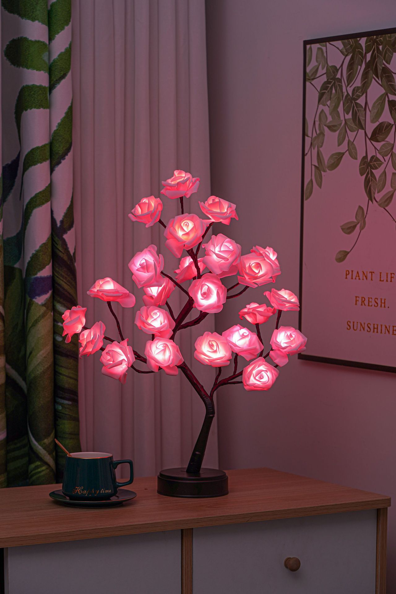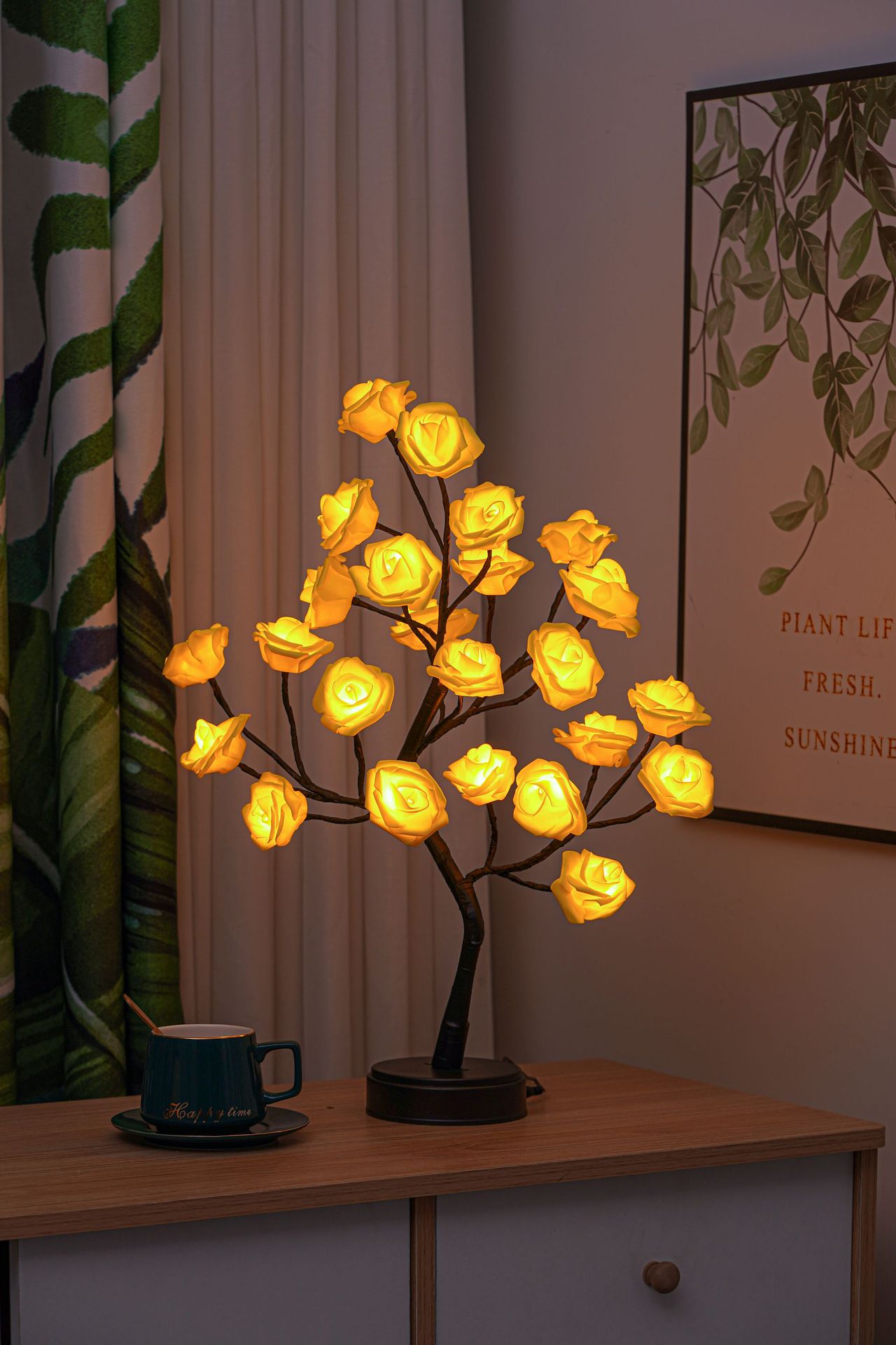 국경 간 랜턴 분리형 플라스틱 베이스 USB 스위치 시뮬레이션 장미 나무 램프 장식 야간 조명 램프스토어 가기