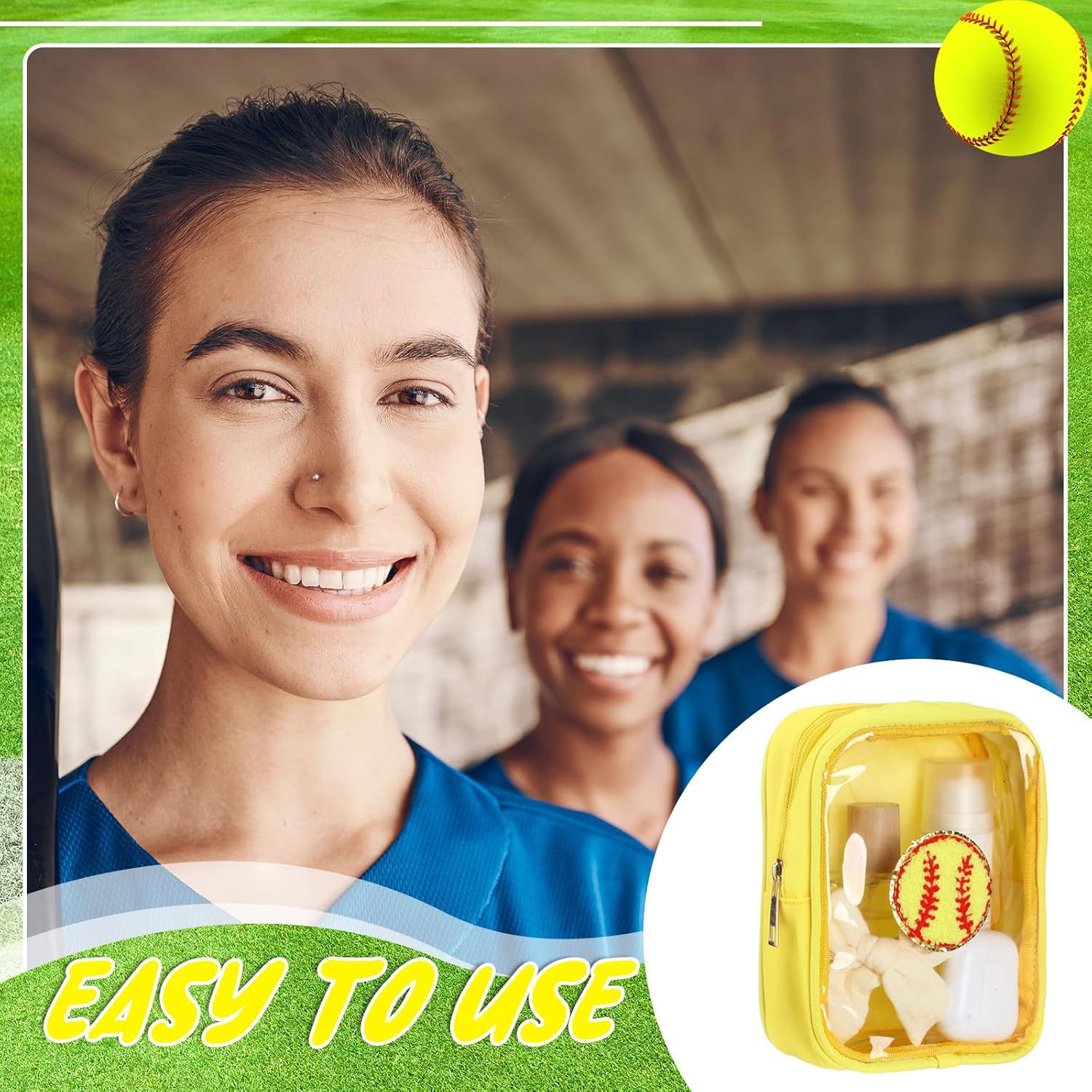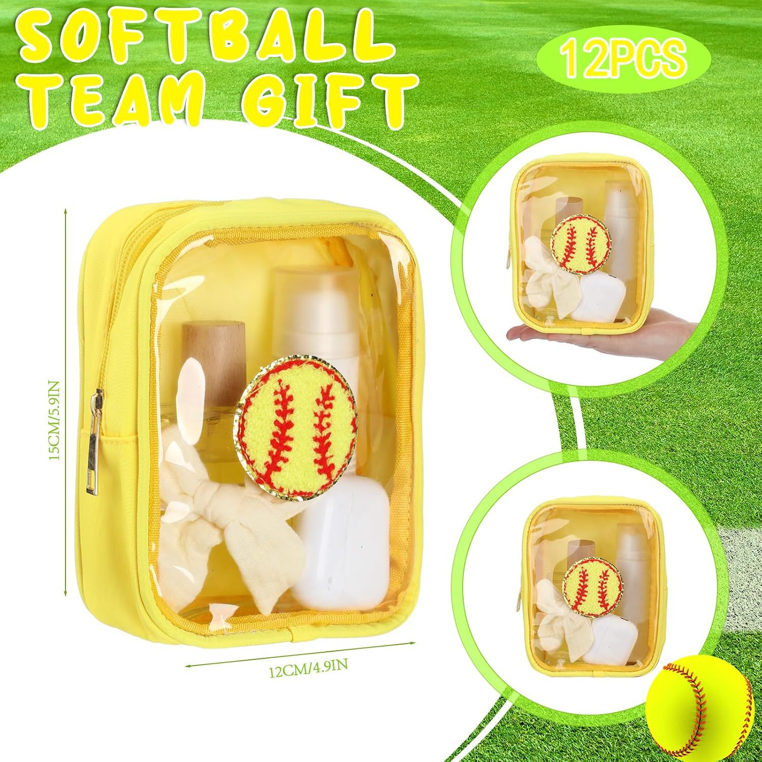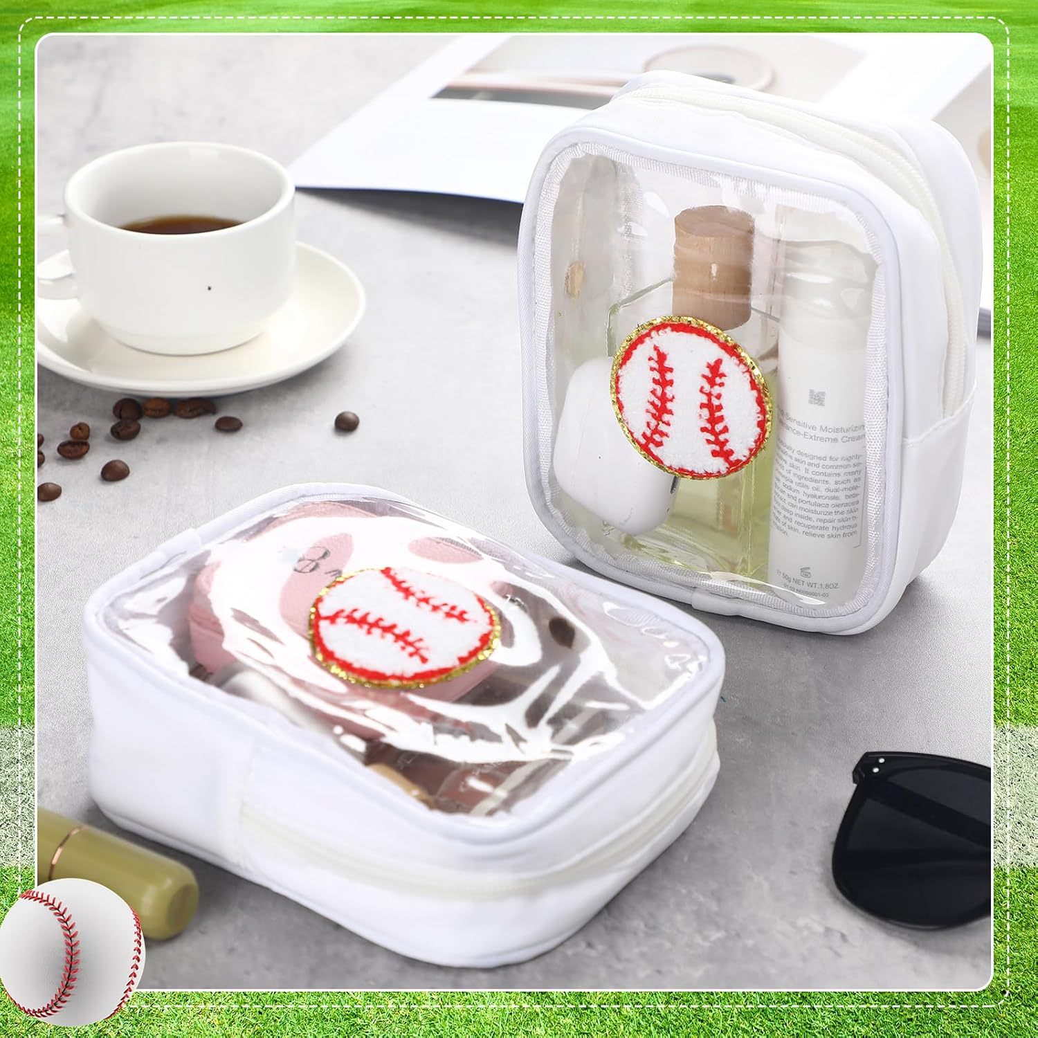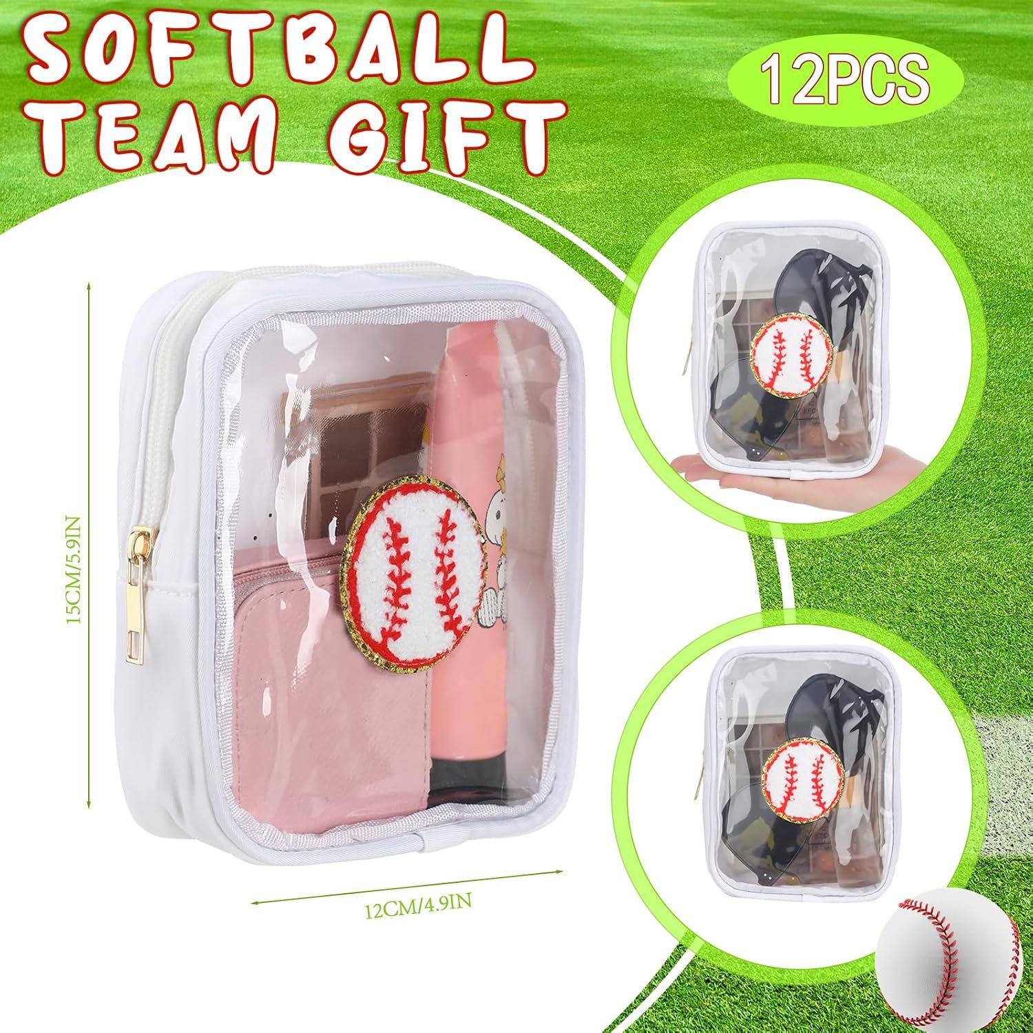 국경 간 소프트볼 야구 자수 문자 화장품 가방 편리한 보관 가방 PVC 투명 세면 용품 가방 여행 클러치 백스토어 가기