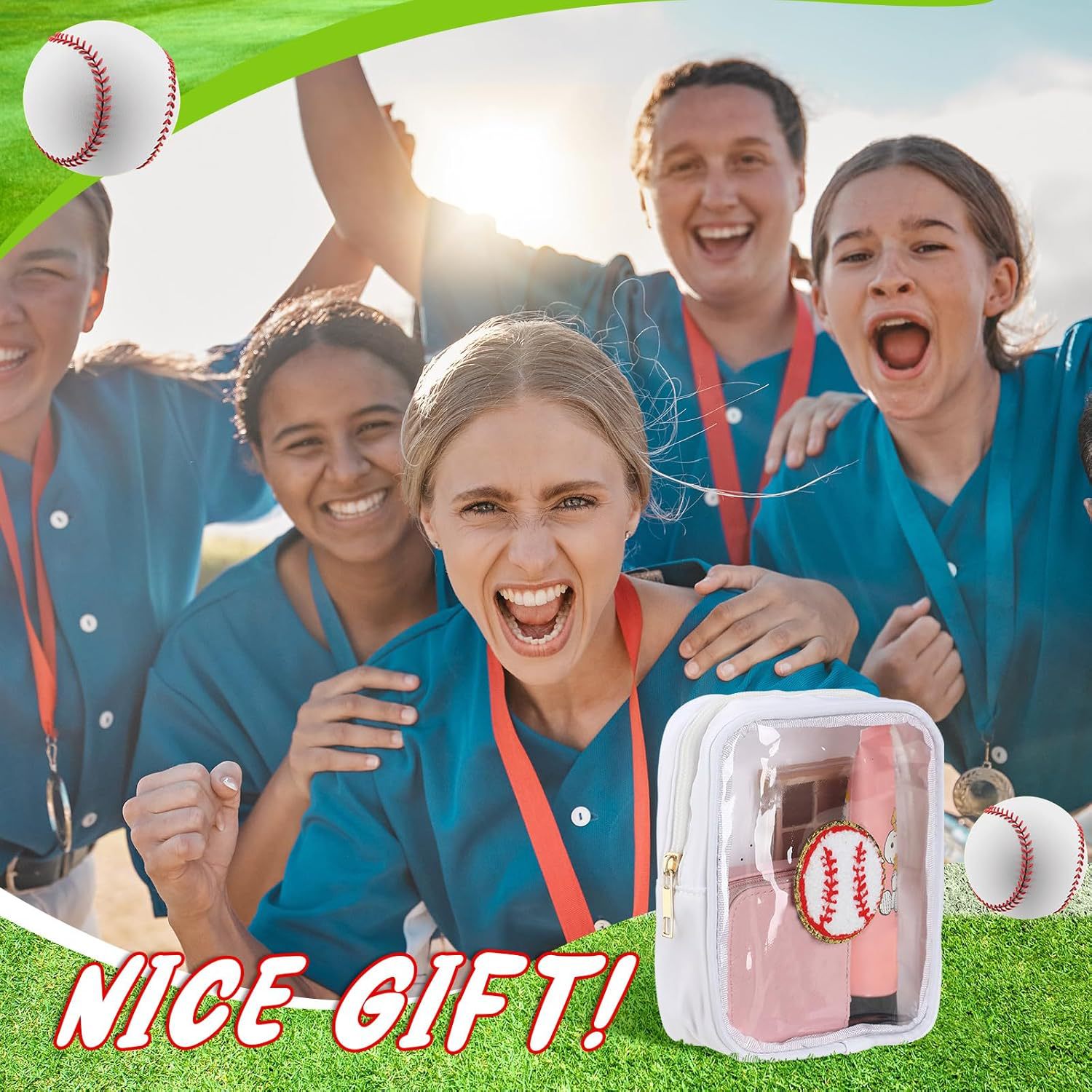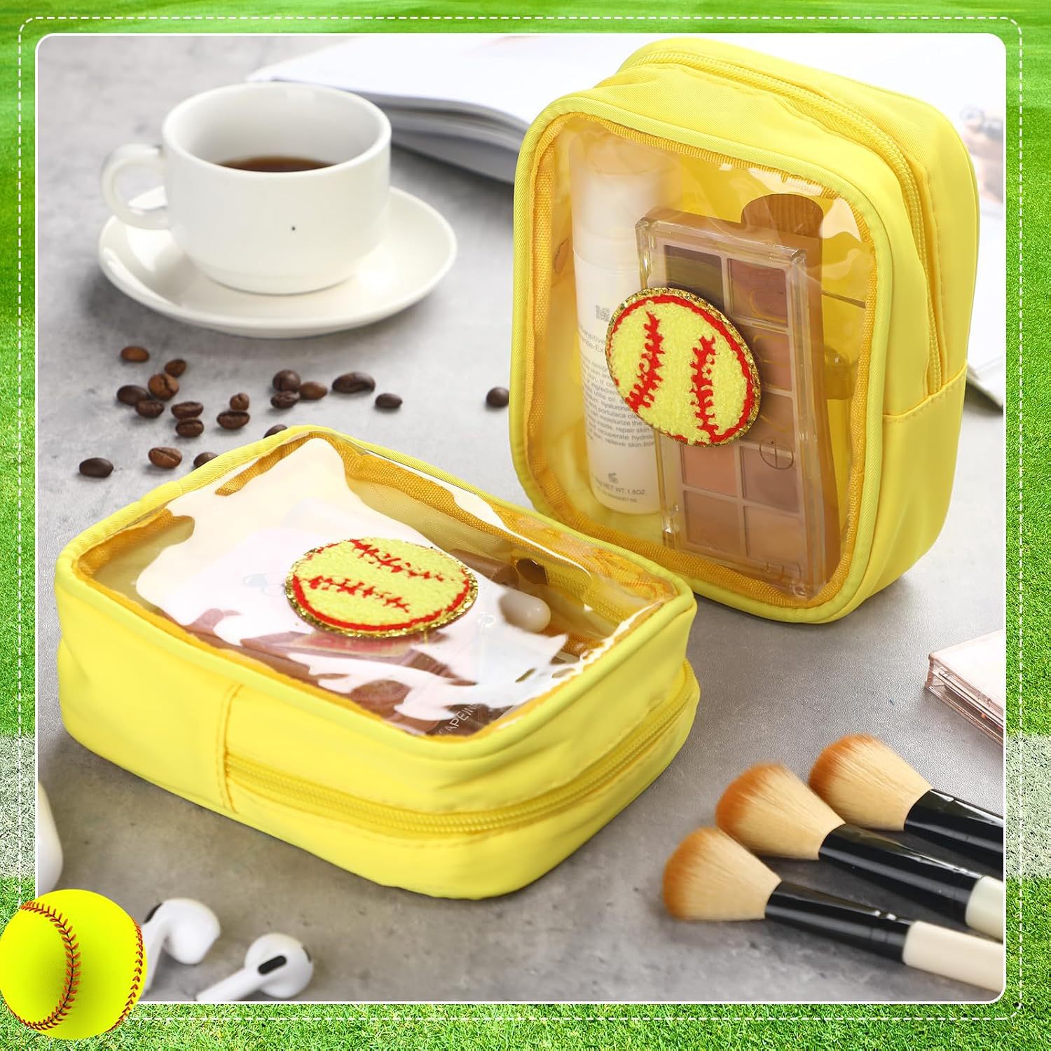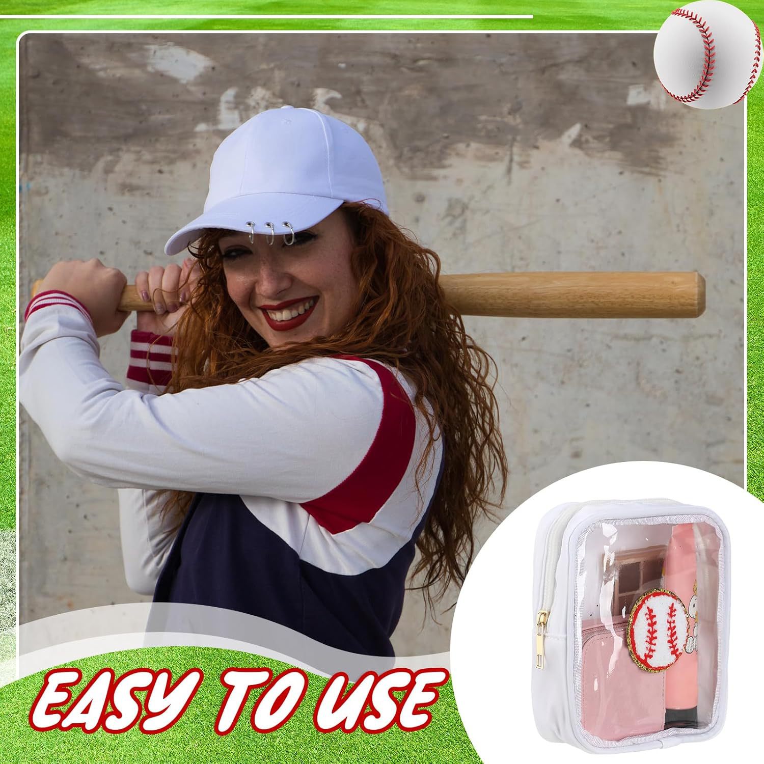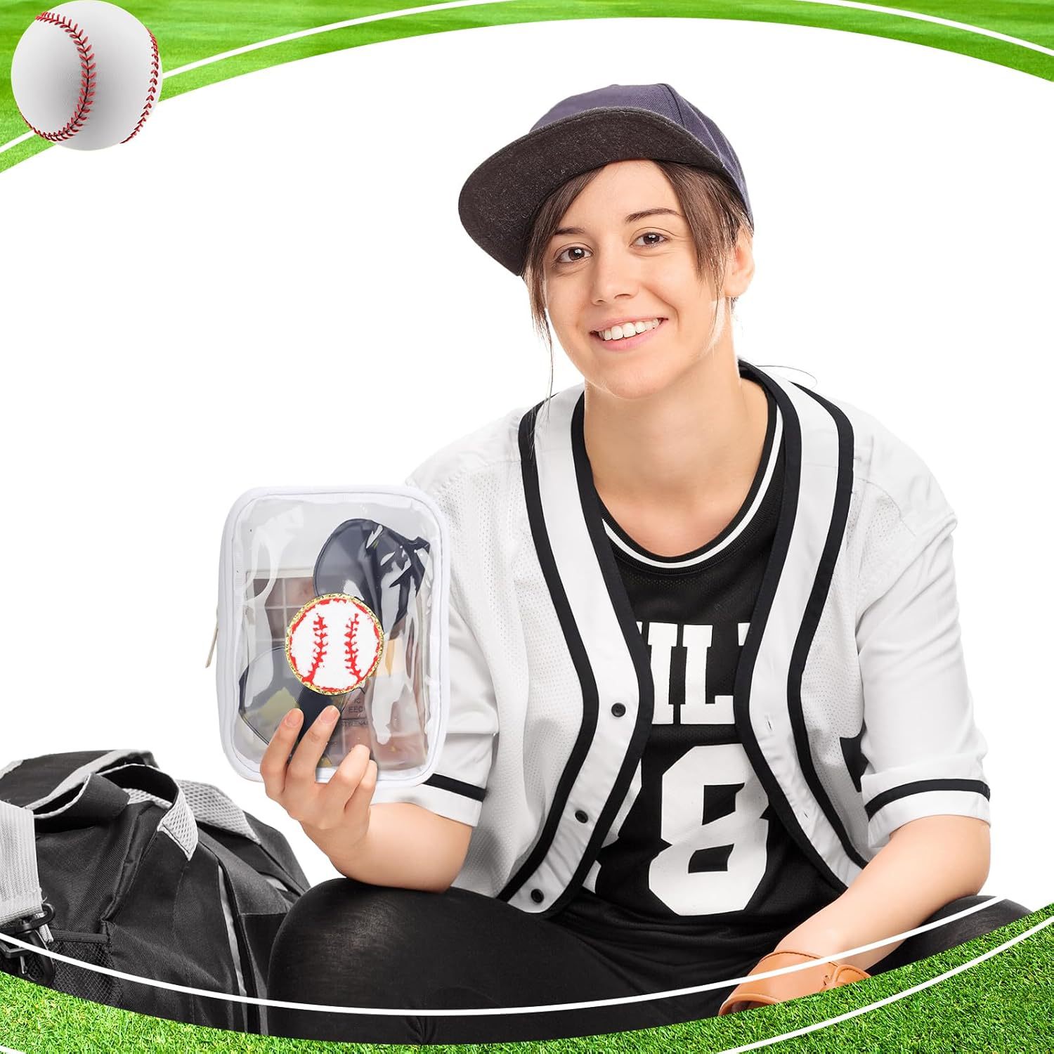 국경 간 소프트볼 야구 자수 문자 화장품 가방 편리한 보관 가방 PVC 투명 세면 용품 가방 여행 클러치 백스토어 가기