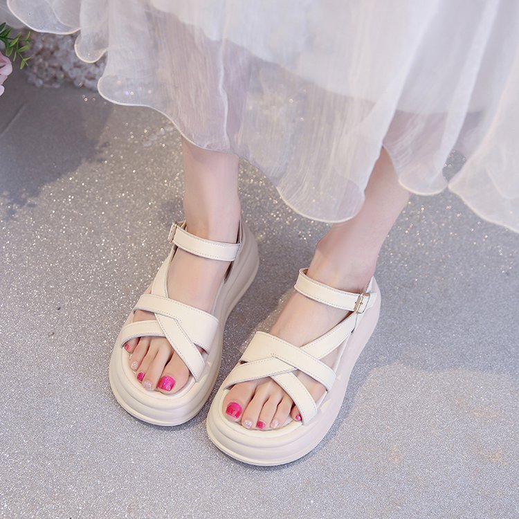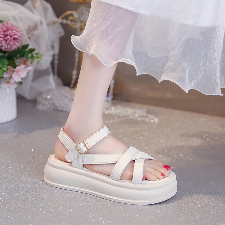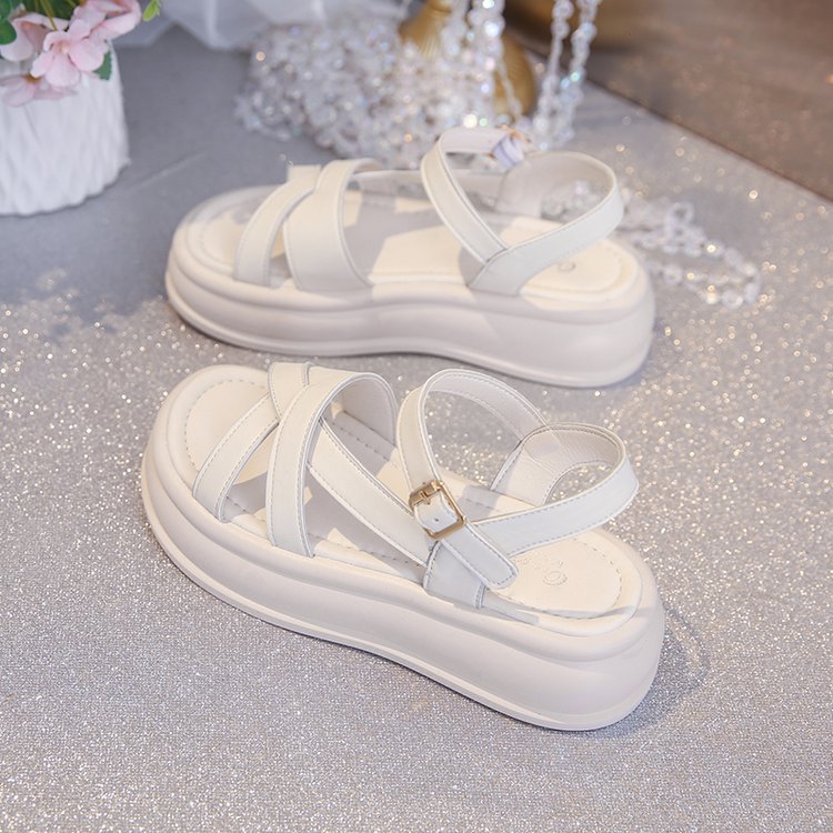 여성을위한 두꺼운 밑창 작은 플랫폼 샌들 2025 여름 새로운 요정 스타일 오픈 발가락 버클 로마 샌들스토어 가기