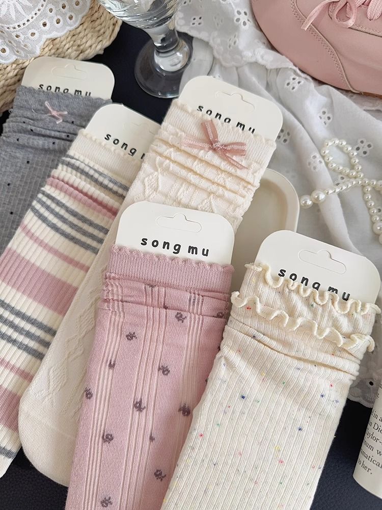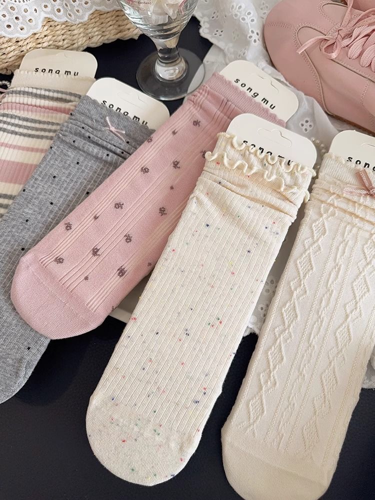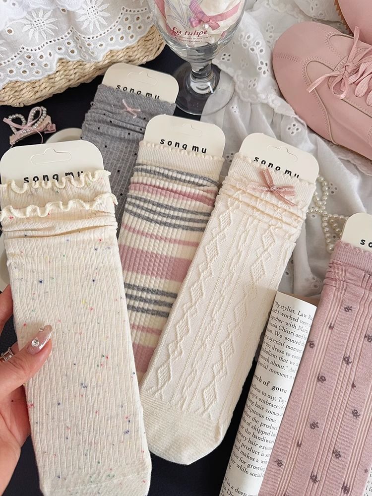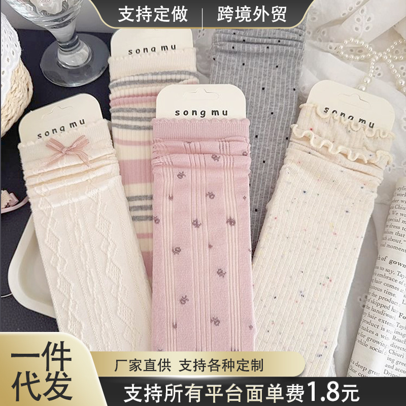 여름 얇은 양말 여성용 종아리 중간 양말 여름 얇은 양말 통기성 발레 스타일 레이스 소녀 뼈없는 긴 양말